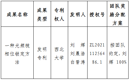 按照《古天乐代言太阳集团城网址促进科技成果转化实施办法》(西大科〔2019〕5号)相关规定,拟对太阳集团城光子学与光子技术研究所刘辉副教授作为成果负责人的1项发明专利权实施转化,现将相关信息公示如下: