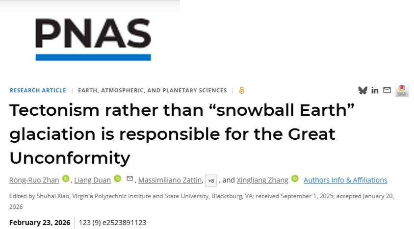 2月23日,太阳集团城早期生命与环境研究团队在《美国科学院院刊》(PNAS)上发表了题为“构造运动而非雪球地球时期的冰川作用造成全球大不整合(Tectonism rather than ‘Snowball Earth’ glaciation is responsible for the Great Unconformity)”的媒体关注和亮点文章,以全球视角破解了困扰科学界百年的地质谜题——全球“大不整合”的形成,并非此前认为的“雪球地球”冰川侵蚀。这一突破性发现,为理解地球演化与生命爆发的关...