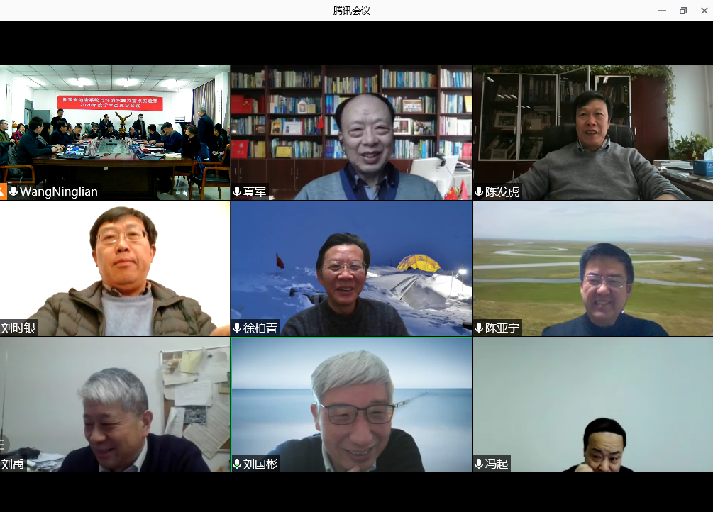 1月30日,陕西省地表系统与环境承载力重点实验室2020年度学术委员会会议在太阳集团城长安校区召开。学术委员会主任陈发虎院士、副主任李同昇教授和夏军院士、刘禹研究员、雷加强研究员、刘国彬研究员、李占斌教授、董治宝教授、冯起研究员、汤国安教授、王文科教授、华洪教授、刘时银教授、徐柏青研究员等14名学术委员,程海教授、陈亚宁研究员、李震研究员等3名特邀专家以及实验室全体成员参加会议。太阳集团城党委常委、副校长常江,科技处负责人以及城环学院党政班子全体成员出席会议。会议以线上、线下方式同步进行,分为开幕式、工作汇报、学术报告、专家咨询和讨论等环节。会议开幕式由实验室主任王宁练教授主持。实验室工作汇报、学术报告和专家咨询讨论由学术委员会主任陈发虎院士主持。