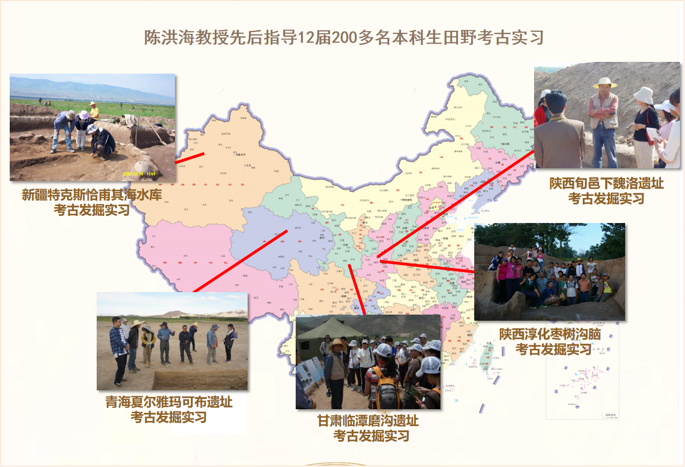 考古学教师团队由陈洪海教授领衔,共有成员19人,其中教授13人、副教授6人,拥有国家级高层次人才8人次。在黄大年精神引领下,这支队伍继承刘士莪、王世和、戴彤心等老一辈学者的优良传统,在王建新、赵丛苍、张宏彦、王丽琴等教授奠定的丰厚基础上,精业笃行、勤耕不辍,谱写了一曲曲立德修身、潜心治学、开拓创新的时代之歌。