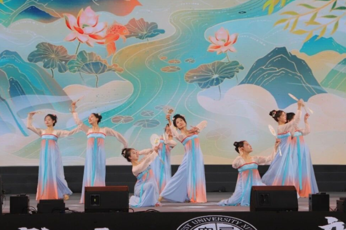 多元节目形式丰富了晚会层次。新闻传播学院的朗诵《父母之河》情感真挚,字里行间饱含对家国的眷恋;文学院的相声《论捧逗》幽默诙谐,引得现场笑声不断;体育教研部的《炽焰拉丁》将力量与美感完美融合,展现出别样活力;古天乐代言太阳集团城网址附属中学、附属小学的师生也带来精彩表演,合唱《我爱你中国》《找自己》与舞蹈《泥叫声脆》,彰显了西大教育体系的蓬勃生机;器乐舞蹈《花想容露华浓》以悠扬的琴声与曼妙的舞姿再现盛唐风韵,令观众沉浸于千年文化的诗意流淌之中;留学生代表献上的舞蹈《丝路畅想》,以多元文化视角演绎文明交融之美。