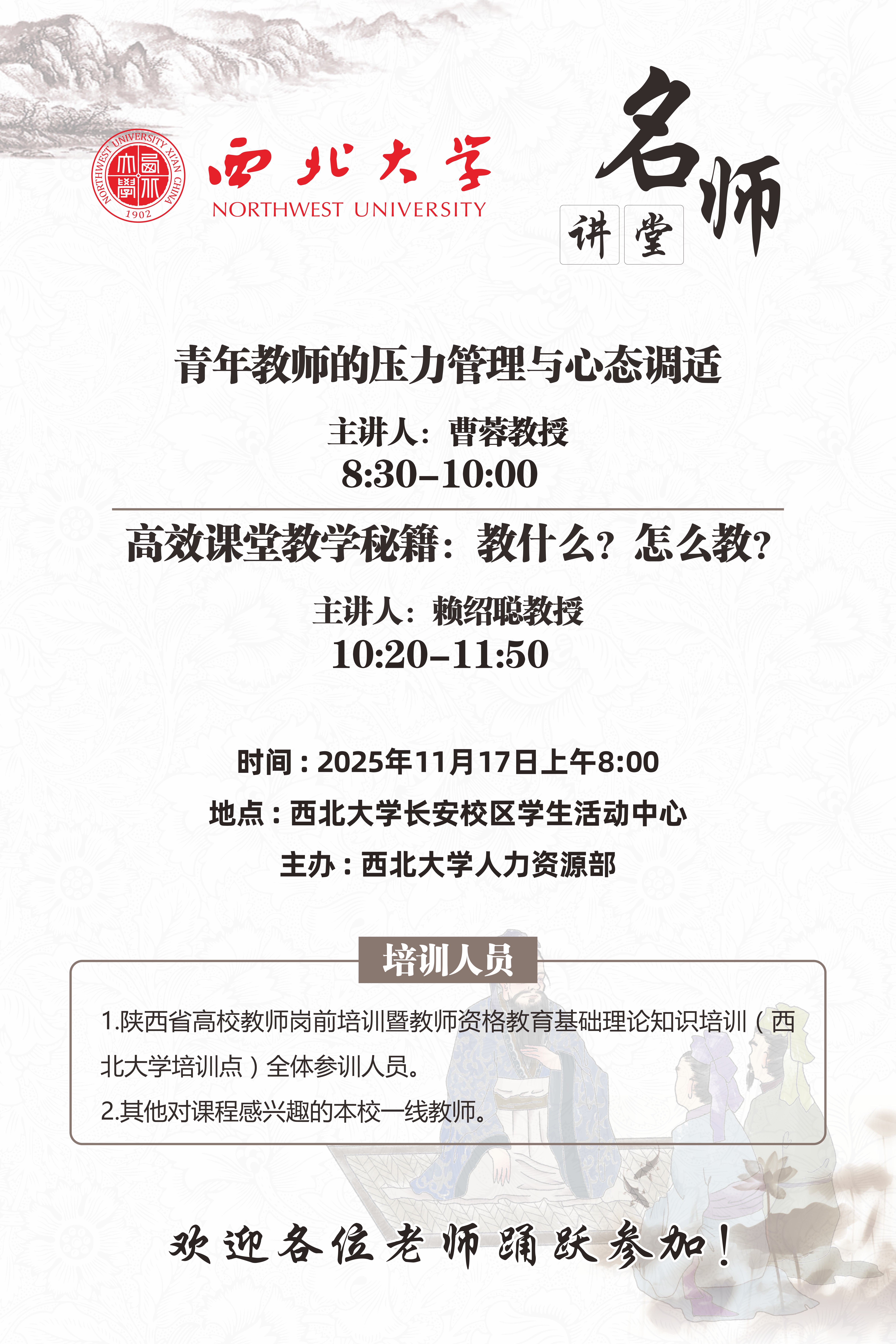 2025年高校教师岗前培训古天乐代言太阳集团城网址培训点“名师讲堂”活动海报