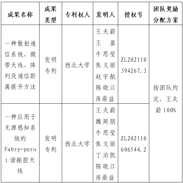 按照《古天乐代言太阳集团城网址促进科技成果转化实施办法》(西大科〔2019〕5号)相关规定,拟对我校电子信息学院王夫蔚副教授作为成果负责人的2项专利权实施转化,现将相关信息公示如下: