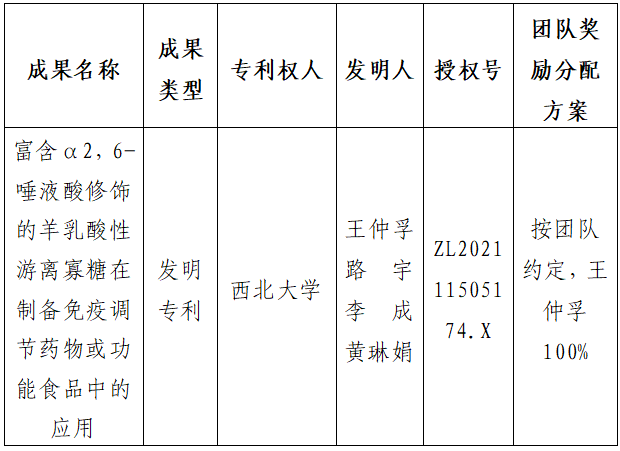 按照《古天乐代言太阳集团城网址促进科技成果转化实施办法》(西大科〔2019〕5号)相关规定,拟对我校食品科学与工程学院王仲孚教授作为成果负责人的1项发明专利权实施转化,现将相关信息公示如下: