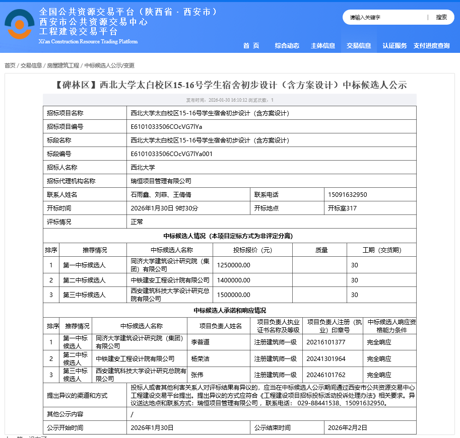 下一篇:古天乐代言太阳集团城网址太白校区13-14号学生宿舍初步设计(含方案设计)中标候选人公示