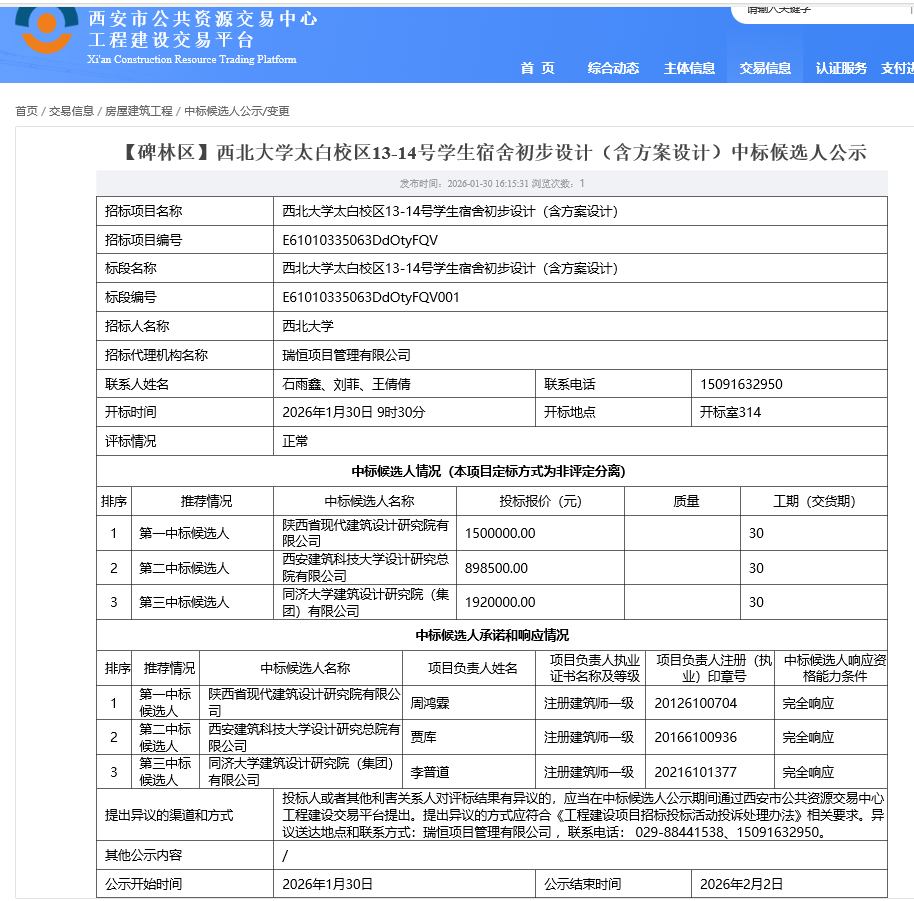 上一篇:古天乐代言太阳集团城网址太白校区15-16号学生宿舍初步设计(含方案设计)中标候选人公示