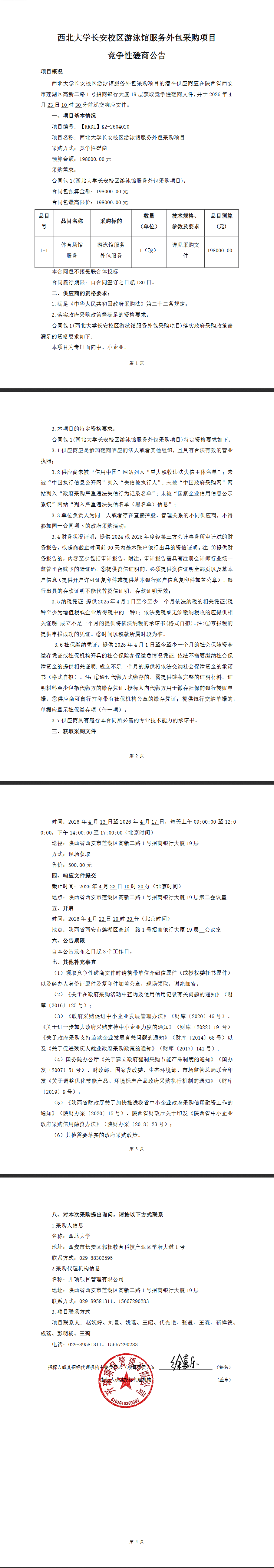 古天乐代言太阳集团城网址长安校区游泳馆服务外包采购项目竞争性磋商公告