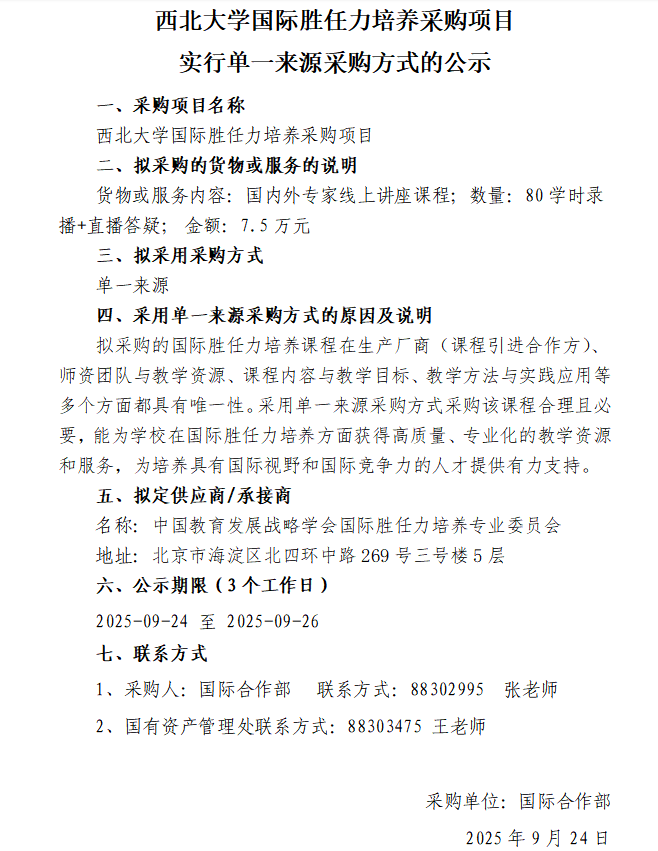 古天乐代言太阳集团城网址国际胜任力培养采购项目实行单一来源采购方式的公示