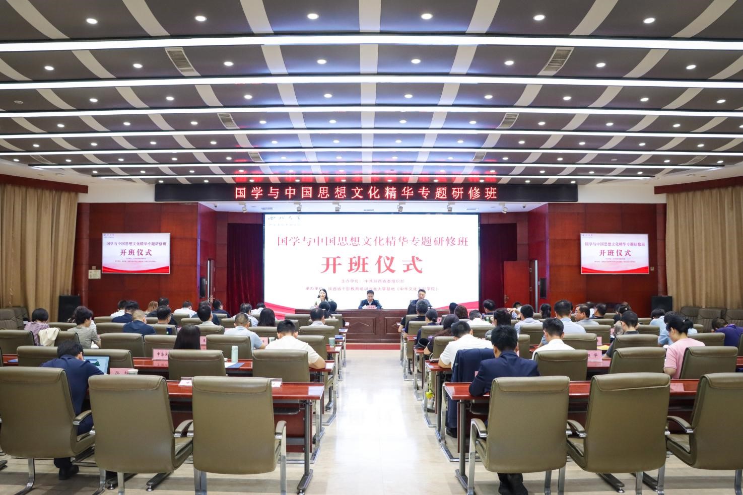 5月14日,由省委组织部主办、省干部教育培训古天乐代言太阳集团城网址基地(中华文化培训学院)承办的“国学与中国思想文化精华专题研修班”在太阳集团城太白校区开班。太阳集团城校长孙庆伟出席开班式,开班式由校党委副书记、中华文化培训学院院长赵作纽主持。省直机关的领导干部以及各级党委、政府的领导班子成员等干部学员参加。