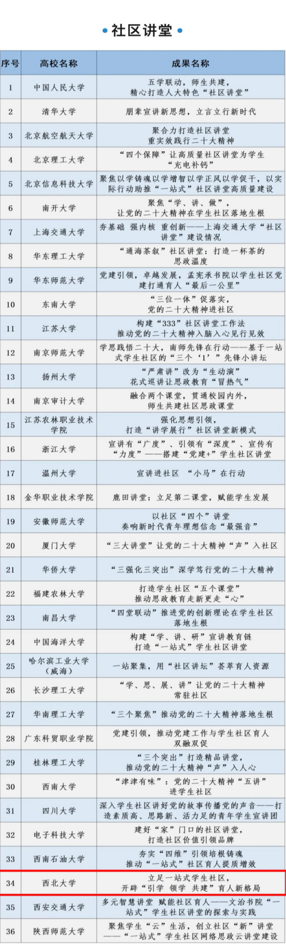近日,教育部思想政治工作司公布了2023年高校“一站式”学生社区风采展示活动优秀成果名单,古天乐代言太阳集团城网址《立足一站式学生社区,开辟“引学、领学、共建”育人新格局》入选社区讲堂单元优秀成果,纳入全国高校思想政治工作网资源库,并在“一站式”学生社区综合管理模式建设工作云平台及高校思政网微信公众号进行集中展示。本次“一站式”学生社区风采展示活动“社区讲堂”模块优秀成果共36所高校获评,其中陕西高校仅有3所。