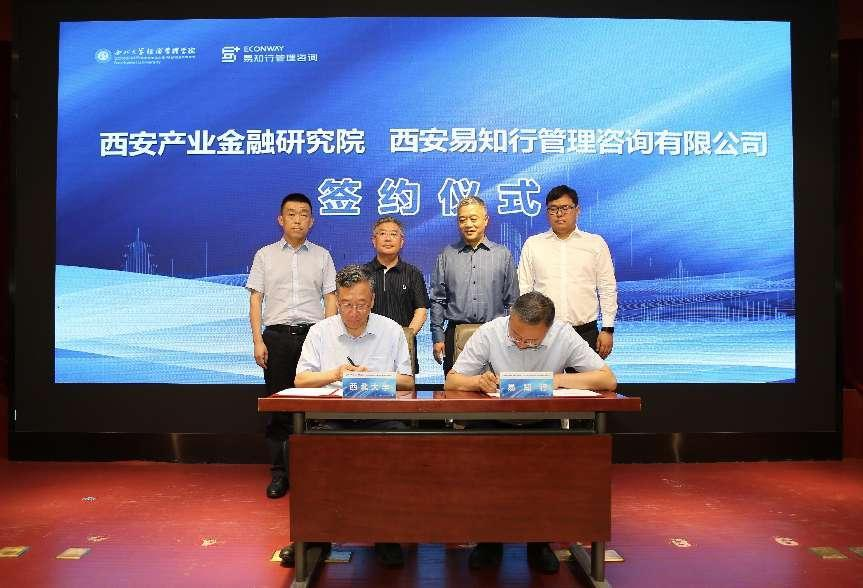论坛上,西安产业·金融研究院执行院长王满仓与易知行咨询集团董事长陈强共同签署战略合作协议,将充分发挥双方的优势和资源,共同推动西安市产业、金融领域高质量发展贡献智慧和力量。