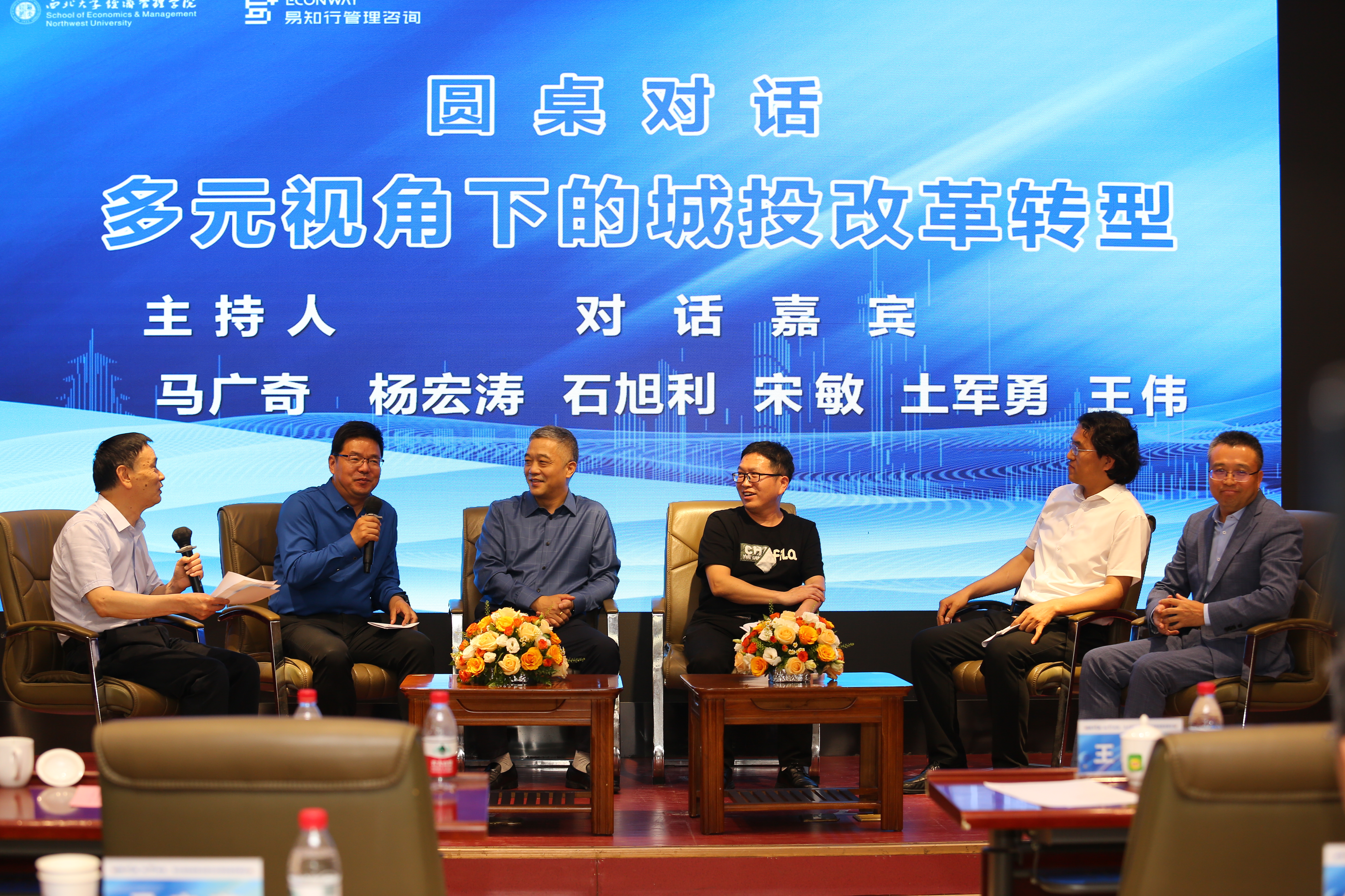 圆桌论坛环节,韩城市经开区管委会主任杨宏涛、西安财经大学经济学院教授宋敏、西安启创财智管理咨询有限公司总经理土军勇、崇阳县通达投资开发有限公司董事石旭利分别从国有企业风险防控、不良资产处置、城投债务化解渠道、城投公司转型发展等不同角度展开交流与讨论。