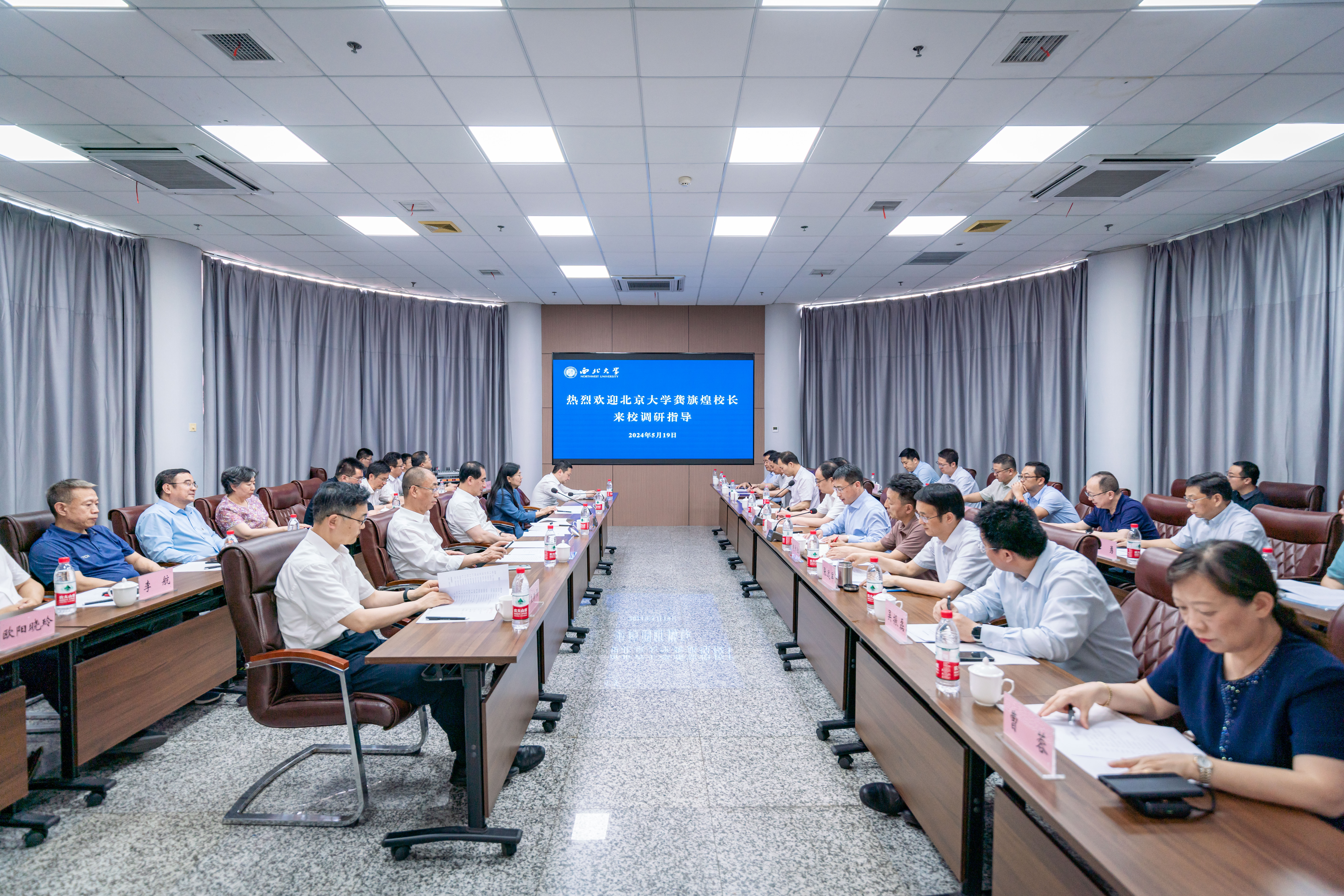 5月19日,北京大学校长、中国科学院院士龚旗煌来校调研座谈。北京大学校领导宁琦、姜国华、任羽中和相关部门负责人一同调研。省教育厅厅长王树声、校长孙庆伟、中国科学院院士舒德干和校领导赵作纽、吕建荣、肖道远、张远军、陈富林、吴振磊、李振海、曹蓉,学校相关部门负责人参加调研座谈。