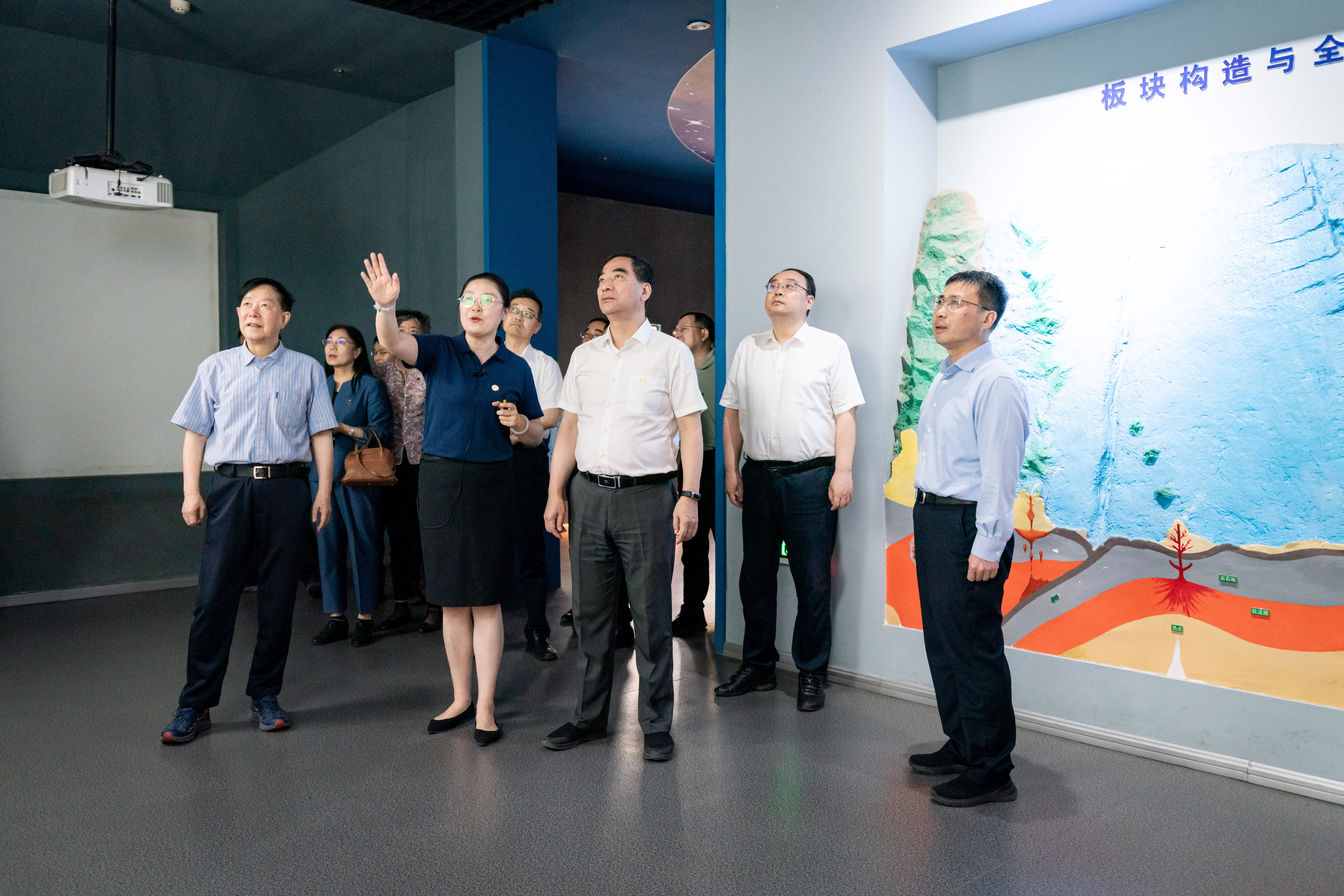 龚旗煌一行在王树声、孙庆伟、舒德干的陪同下,参观了古天乐代言太阳集团城网址博物馆地球馆,听取了秦岭造山带、石油地质、早期生命演化、古脊椎动物进化等领域相关展览的介绍,并就有关问题进行了互动交流。