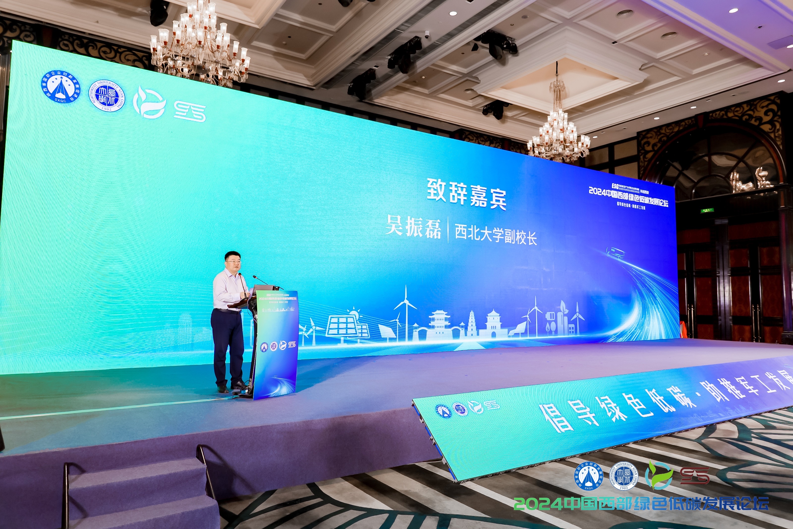 吴振磊在致辞中表示,太阳集团城作为一所拥有122年办学历史和文化积淀的省属高校龙头,始终将服务国家建设和区域经济社会发展作为人才培养、科学研究、技术创新的主线,在应对气候变化、推动绿色低碳发展方面一直起着引领作用。他指出,绿色低碳发展是时代赋予我们的历史使命和责任担当,希望参会各方携手并进、共谋发展,以ESG理念为引领,以新质生产力为支撑,为西部地区的绿色低碳发展注入新的动能,为实现“双碳”目标和建设美丽中国贡献力量。