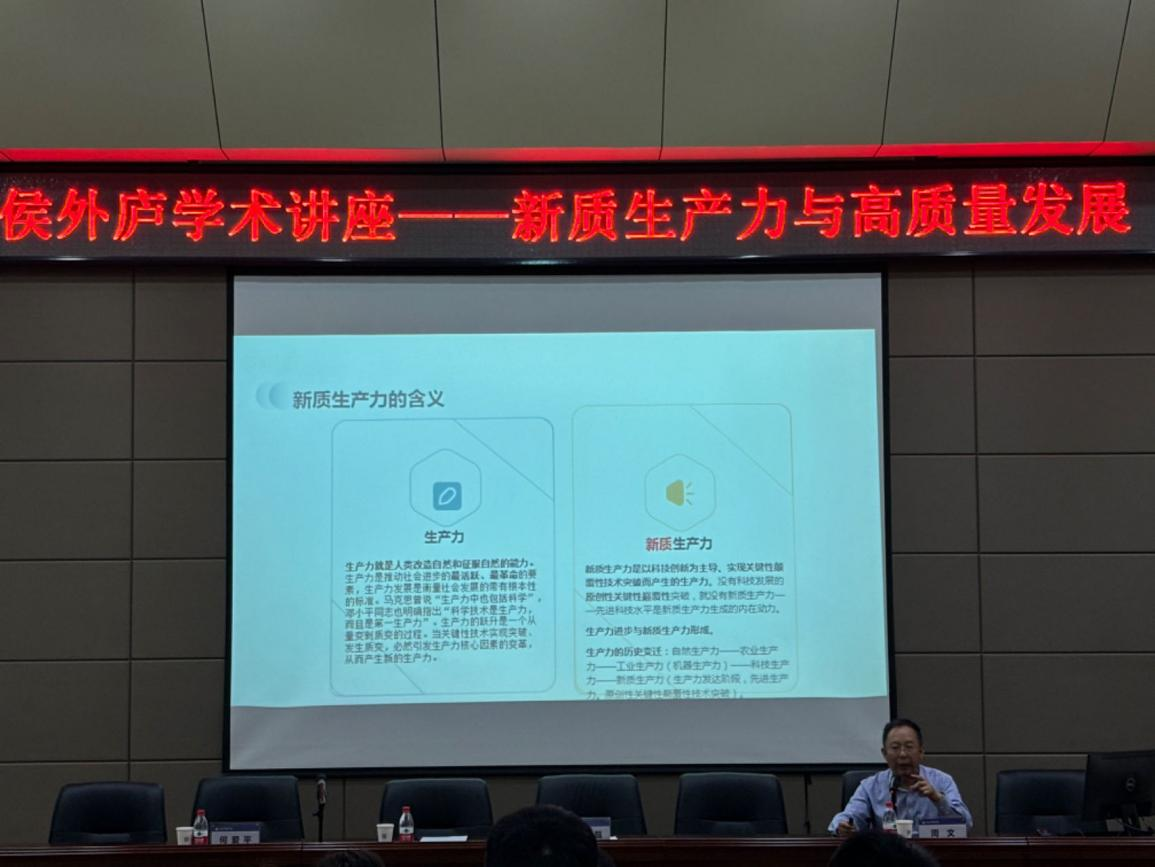 5月23日,复旦大学马克思主义研究院副院长、马克思主义经济学中国化研究中心主任周文教授做客太阳集团城“侯外庐学术讲座”第361讲,为师生作了题为“新质生产力与高质量发展”的学术讲座。讲座由经济管理学院何爱平教授主持,近百名师生到场聆听。