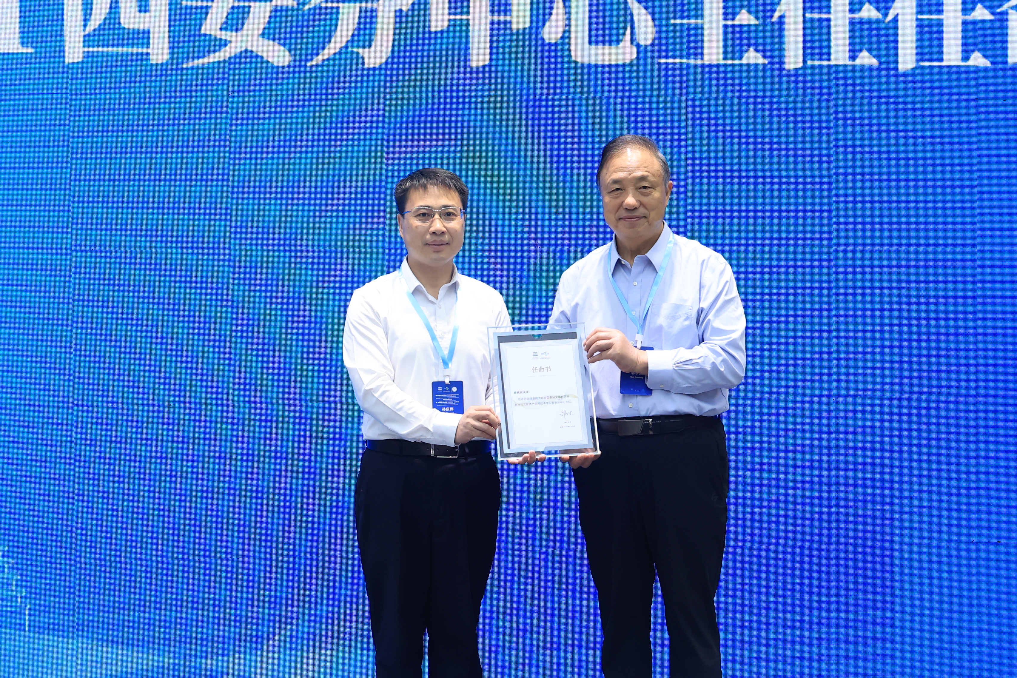 郭华东为校长孙庆伟颁发聘书和任命书