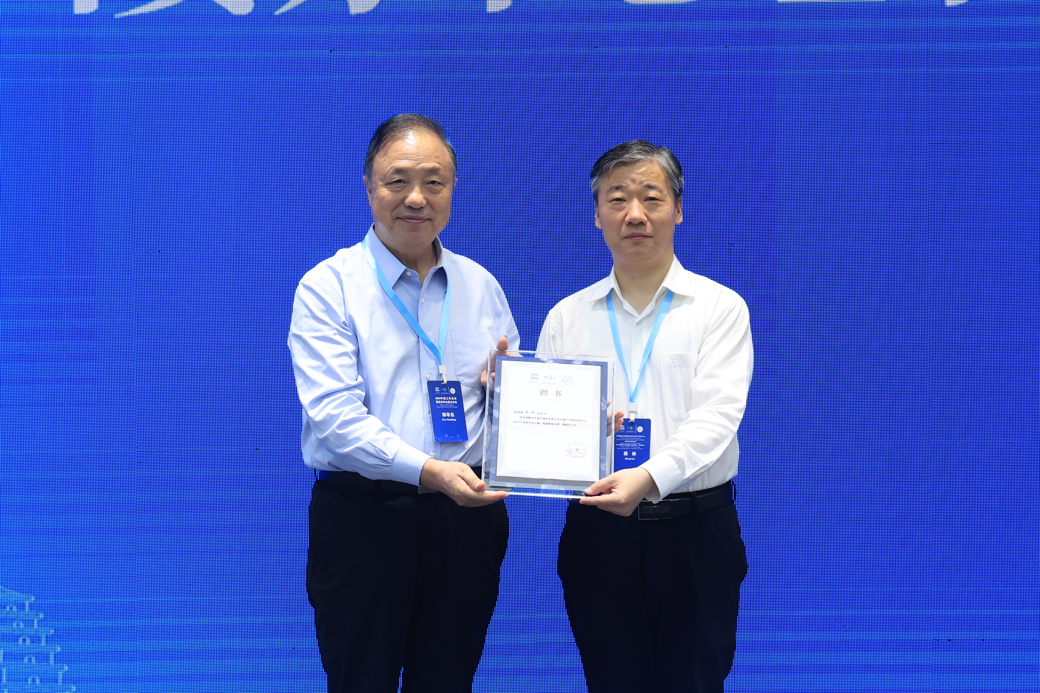 HIST主任、中国科学院院士郭华东为校党委书记蒋林颁发聘书和任命书