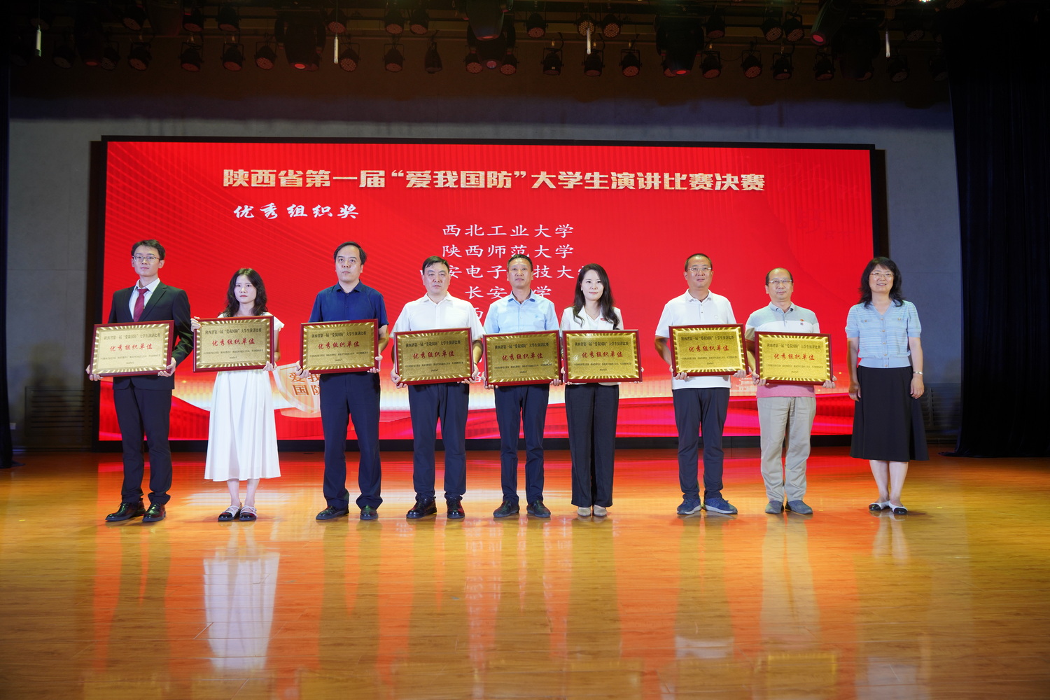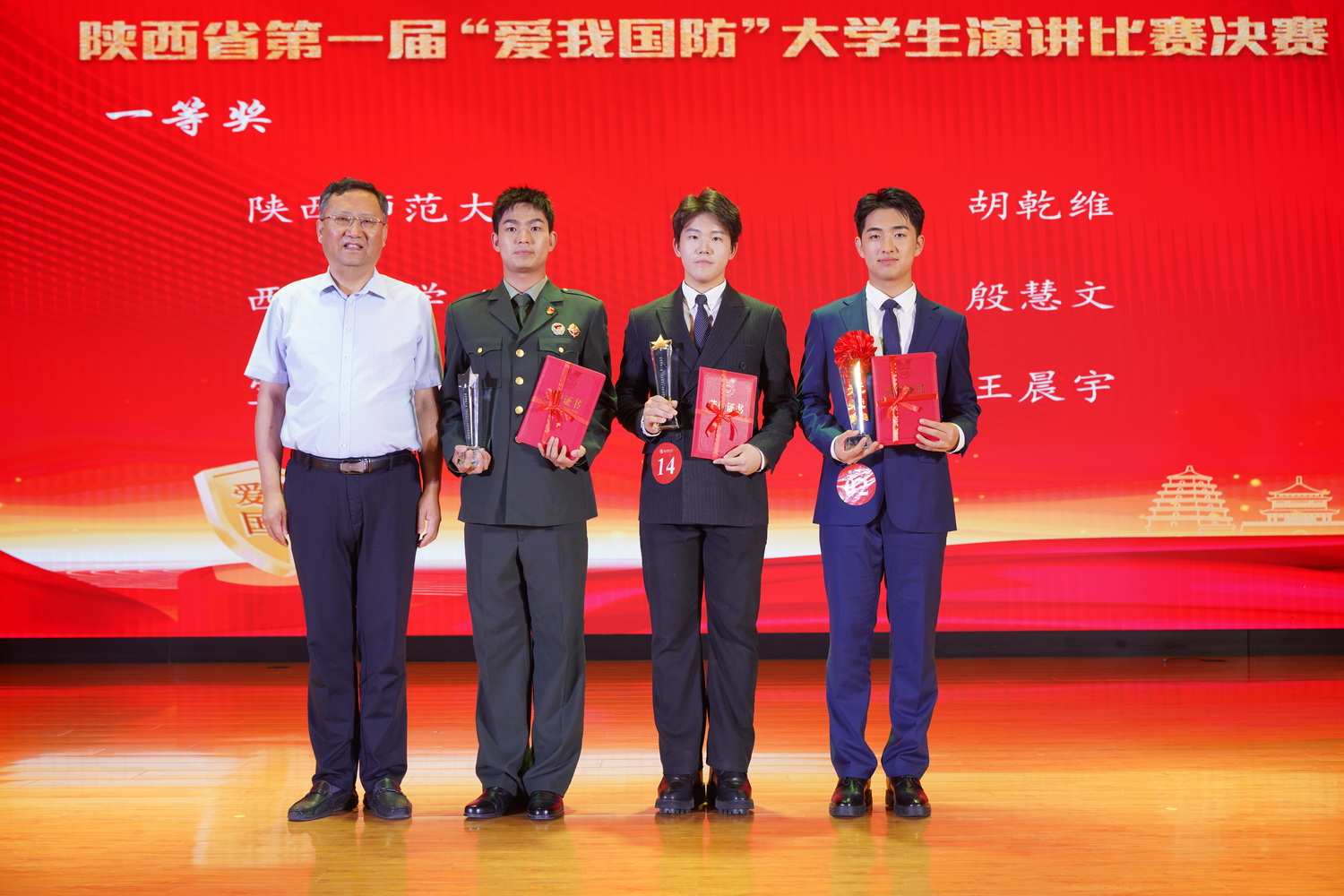 陕西省第一届“爱我国防”大学生演讲比赛由中共陕西省委宣传部、陕西省教育厅、陕西省军区政治工作局、共青团陕西省委主办,陕西师范大学、陕西广电融媒体集团承办,比赛分为预赛、评议选拔、决赛三个阶段。预赛阶段,各高校择优推荐2名共近300名选手选手参加全省选拔。评议选拔阶段,由省委宣传部牵头组织评委对各高校推荐的演讲比赛实况视频进行打分把关,最终选拔15名选手进入决赛。决赛设一等奖3名,二等奖5名,三等奖7名,优秀组织单位奖8个。