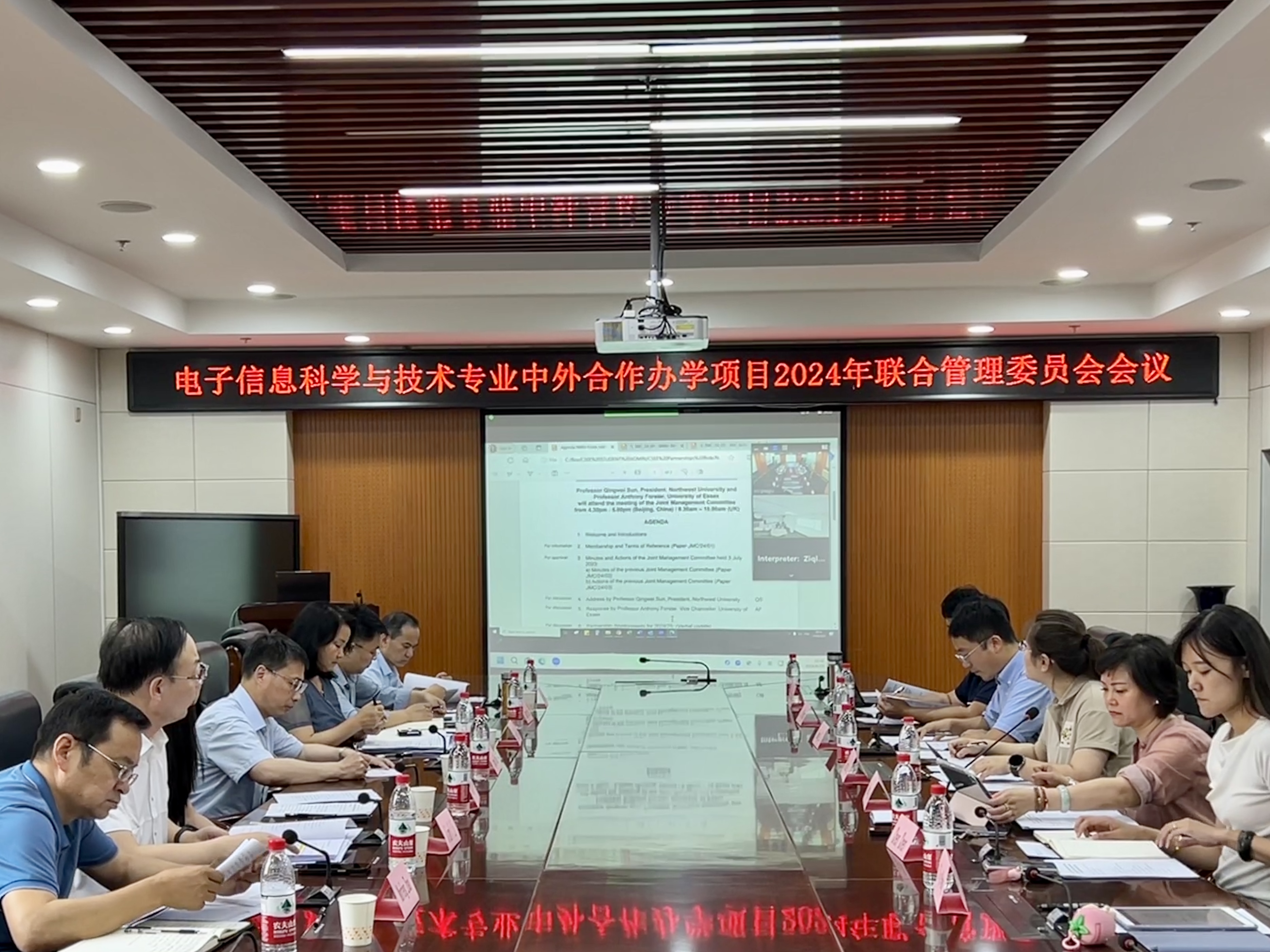 太阳集团城教务处、国际部、财资部、信息学院等中方联合管理委员会成员单位主要负责人线下参会,埃塞克斯大学计算机科学与电子工程学院、中国办公室等英方联合管理委员会成员线上参会。