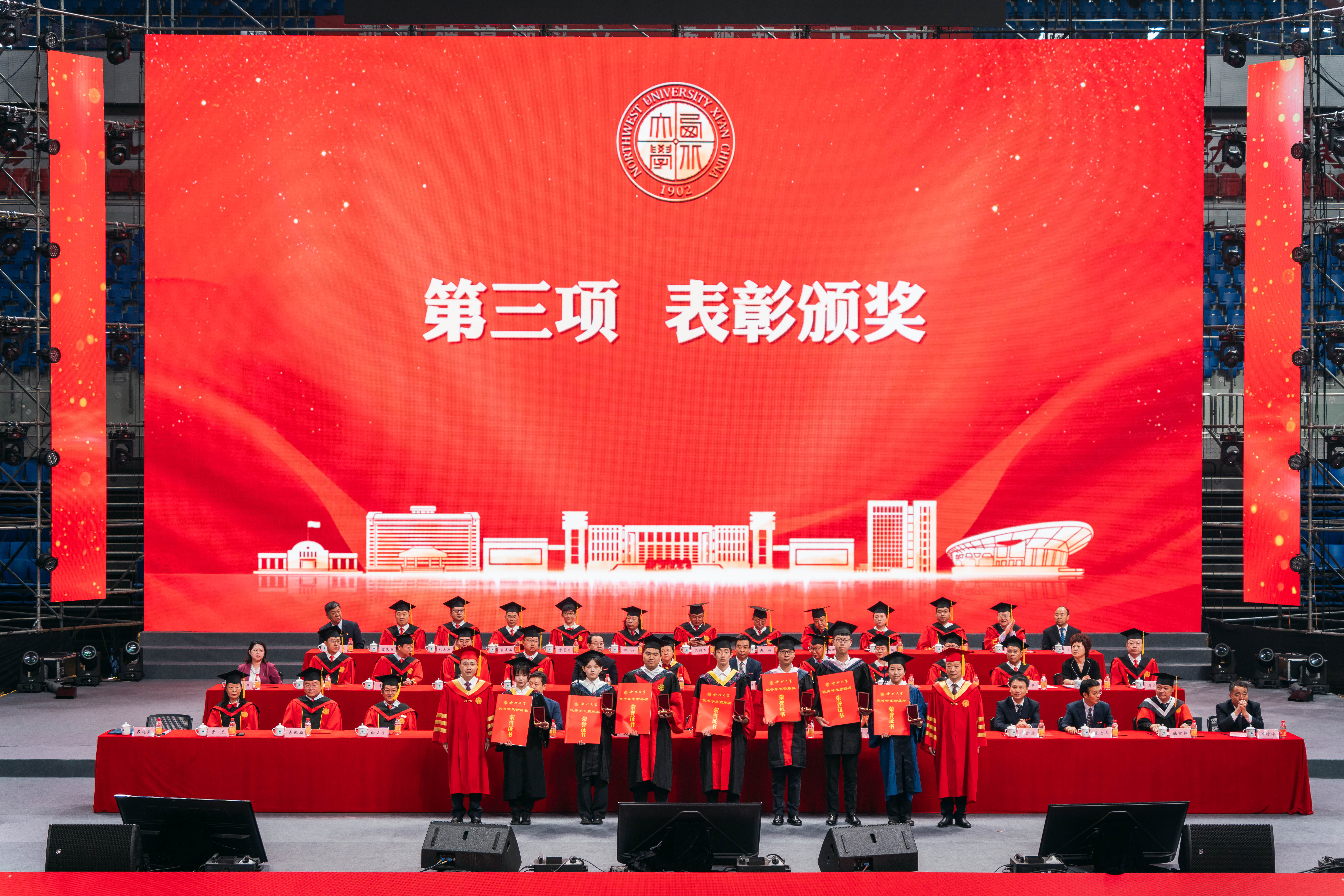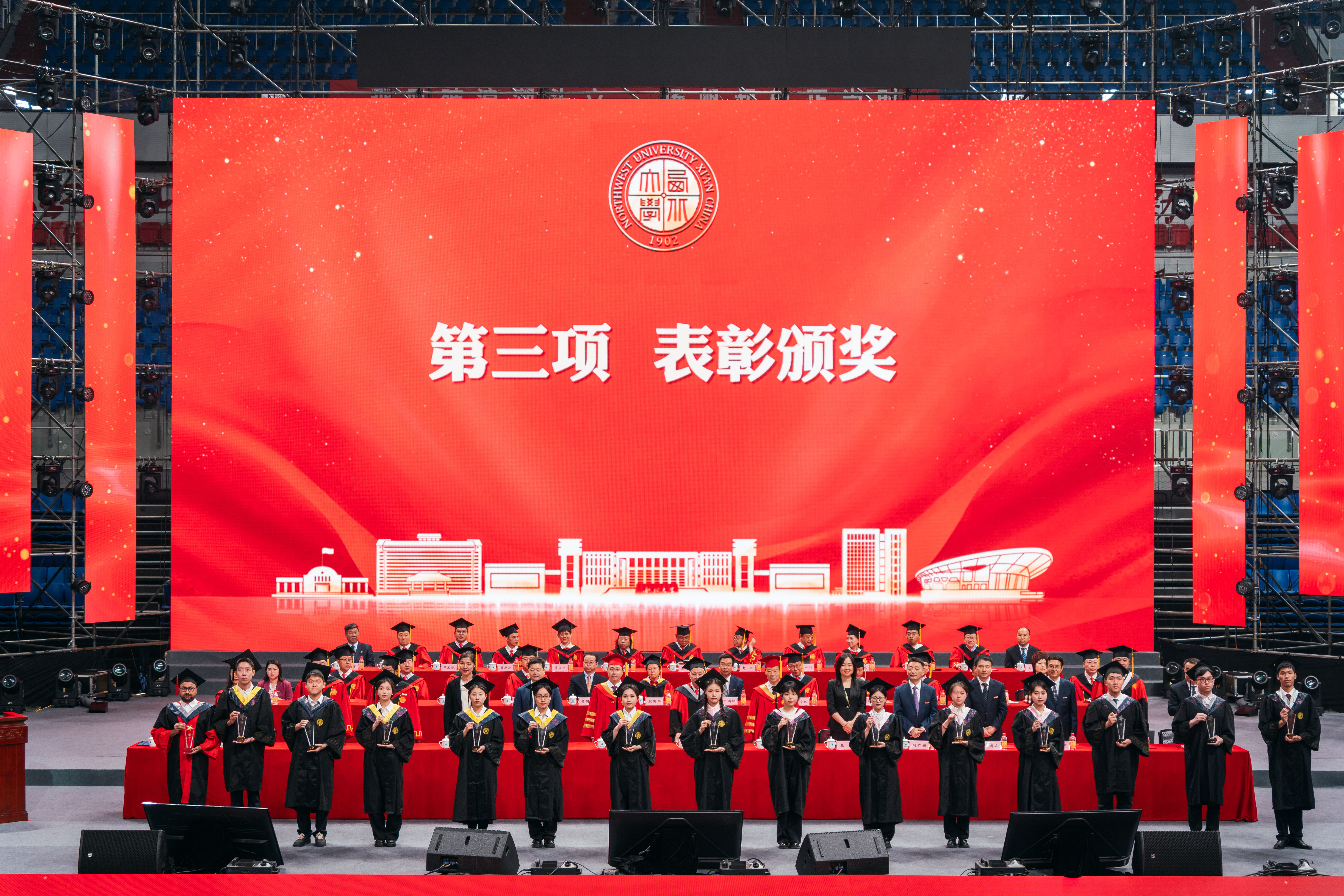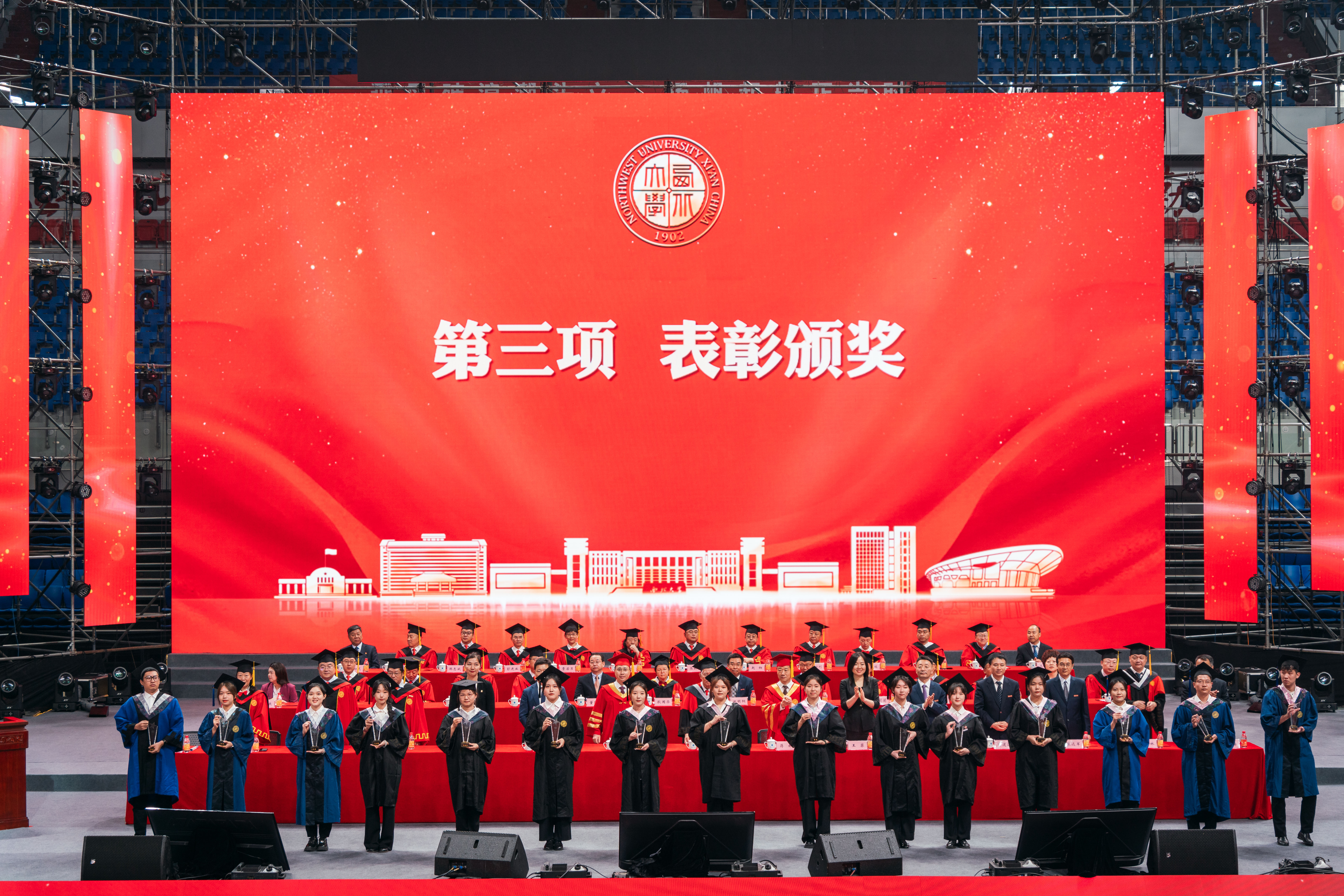 典礼由校党委副书记吕建荣主持,校党委常委、副校长吴振磊,副校长曹蓉分别宣读学位授予决议和表彰决定。