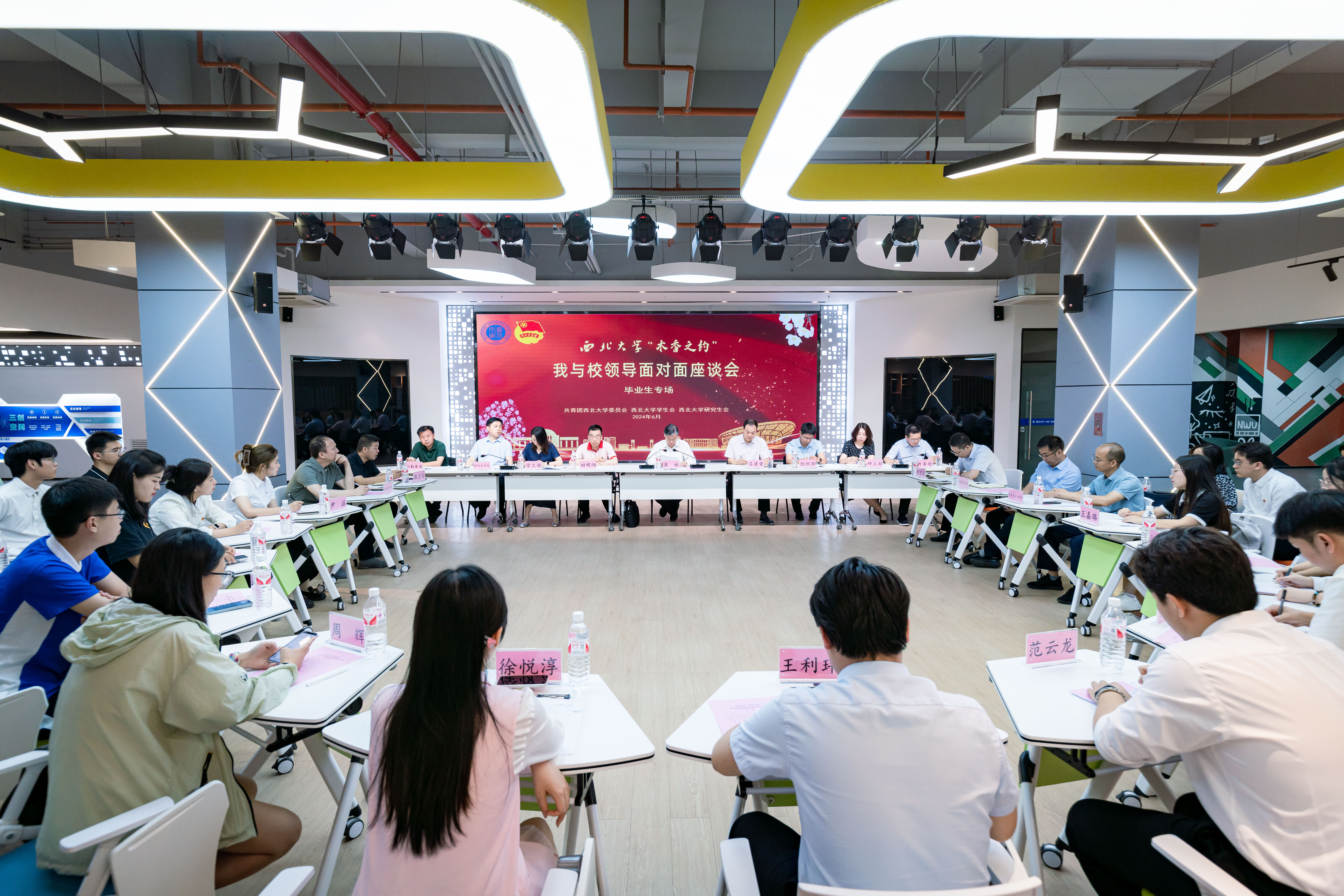6月25日上午,2024年“木香之约”——我与校领导面对面座谈会毕业生专场在长安校区举行。校党委书记蒋林,校党委常委、党委宣传部部长田明纲出席座谈会,学校相关单位负责人、各院(系)应届毕业生代表、校学生会、研究生会学生代表参加此次座谈。座谈会由校党委副书记吕建荣主持。