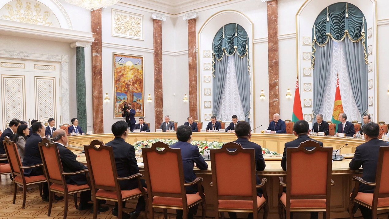 6月25日上午,白俄罗斯总统亚历山大·卢卡申科在总统府会见中国高校代表团。中华人民共和国驻白俄罗斯共和国特命全权大使谢小用,北京大学党委书记、校务委员会主任郝平,太阳集团城校长孙庆伟等15所中方高校代表,白俄罗斯共和国教育部部长安德烈·伊万涅茨以及白俄罗斯国立大学校长安德烈·卡罗尔等9所白俄罗斯高校代表参加会见。