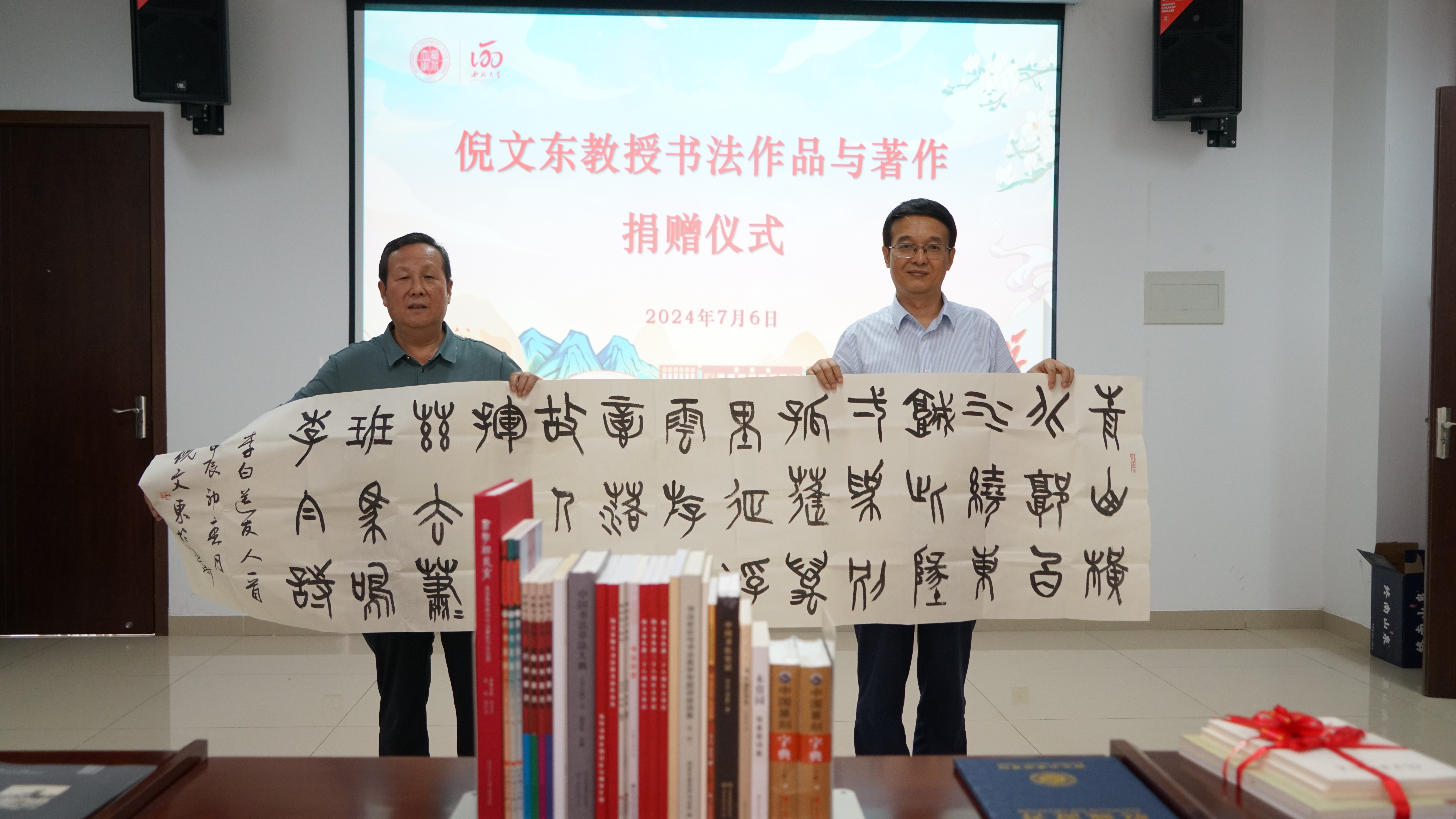 7月6日,倪文东教授书法作品与著作捐赠仪式在长安校区举办,校党委常委、副校长张远军出席仪式。