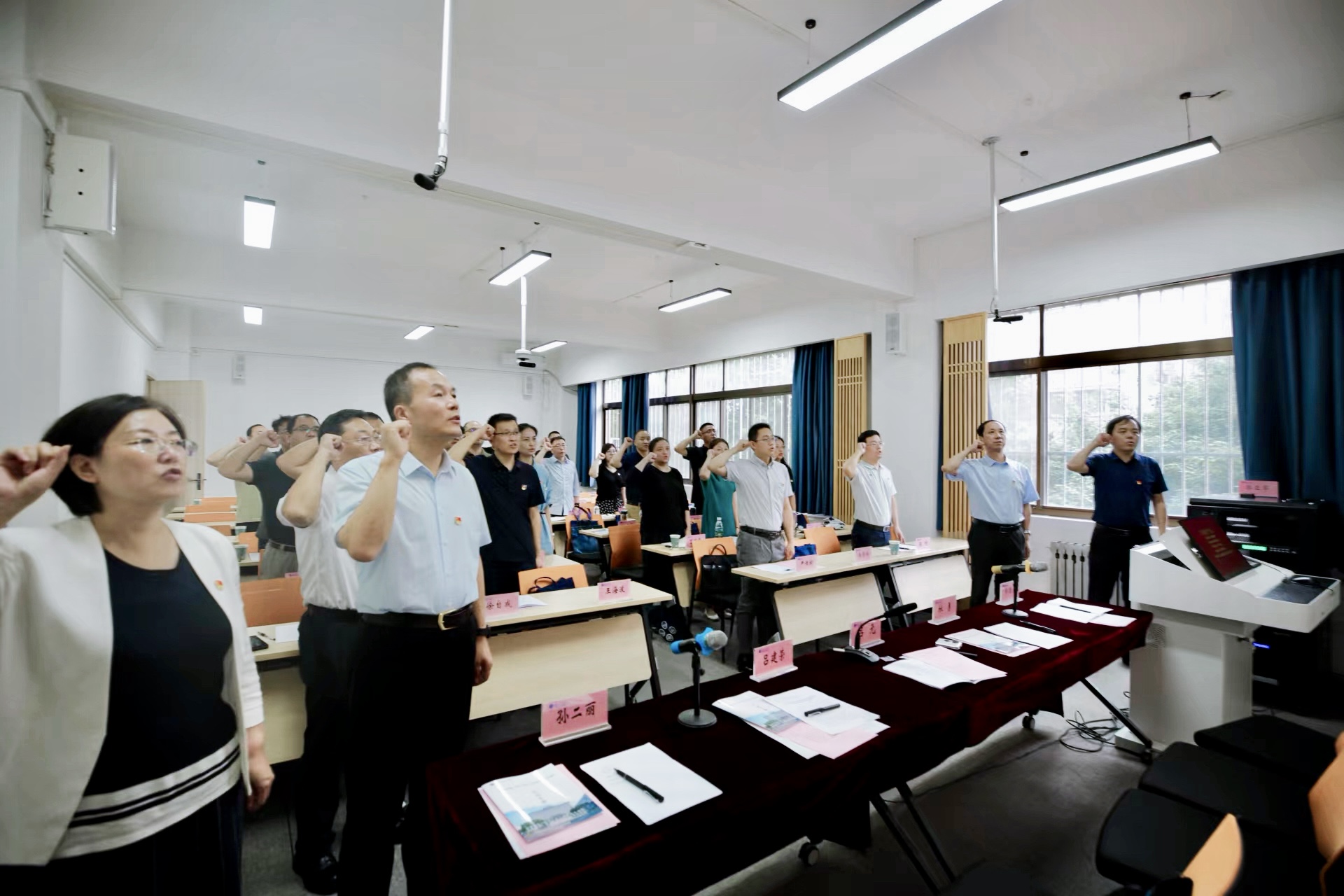 此次培训班成立临时党支部,会上,党支部书记带领全体参训学员重温辅导员誓词,党支部副书记作为参训学员代表作表态发言。吕元、吕建荣为全体参训学员赠送书籍。