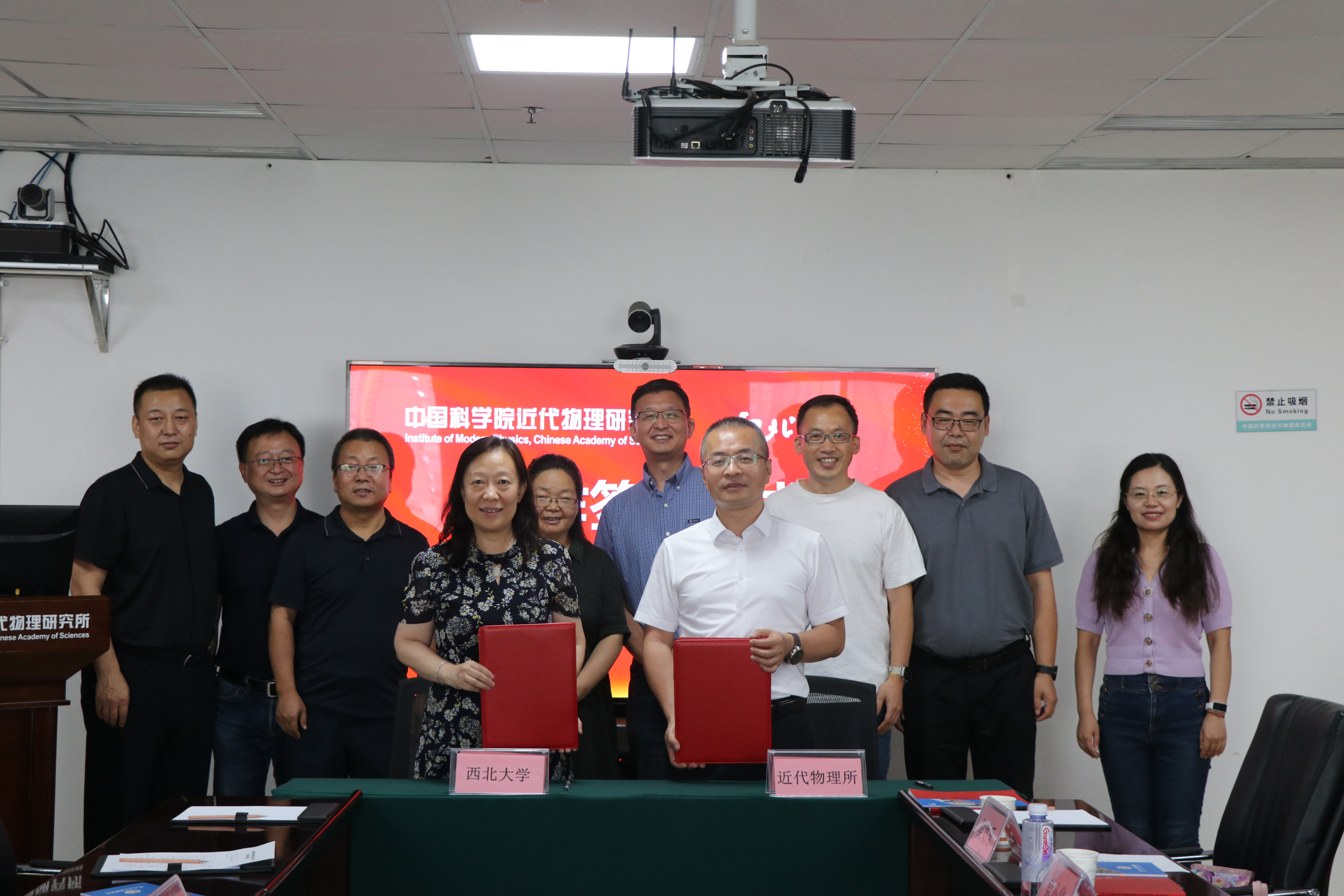 随后,曹蓉、王猛代表双方签署合作协议,曹蓉代表学校向近物所赠送了纪念品。