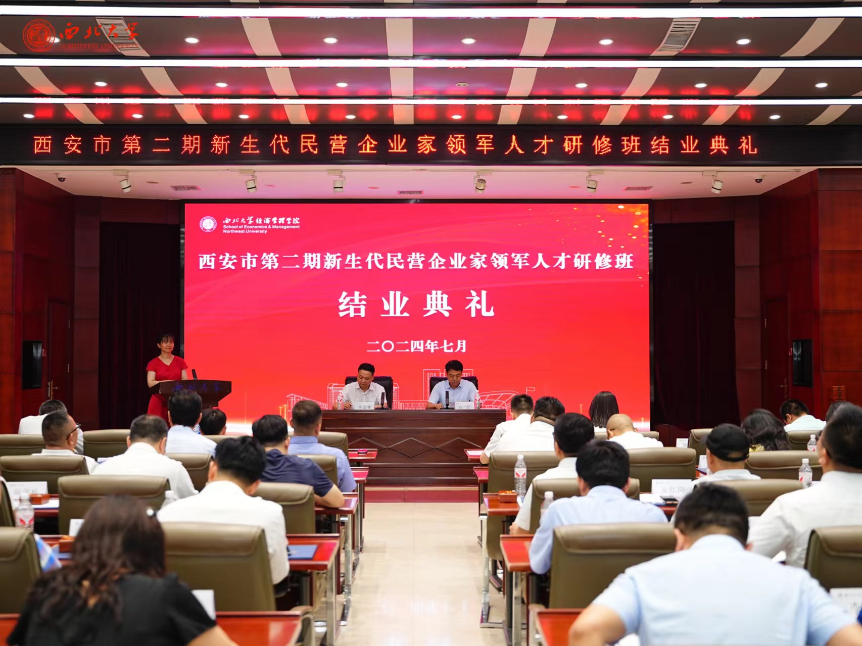 7月21日下午,太阳集团城与中共市委统战部联合举办的西安市第二期新生代民营企业家领军人才研修班结业典礼在太白校区举行。中共西安市委统战部常务副部长陈哲,校党委常委、副校长陈富林及研修班全体学员参加了典礼。典礼由经济管理学院负责人主持。