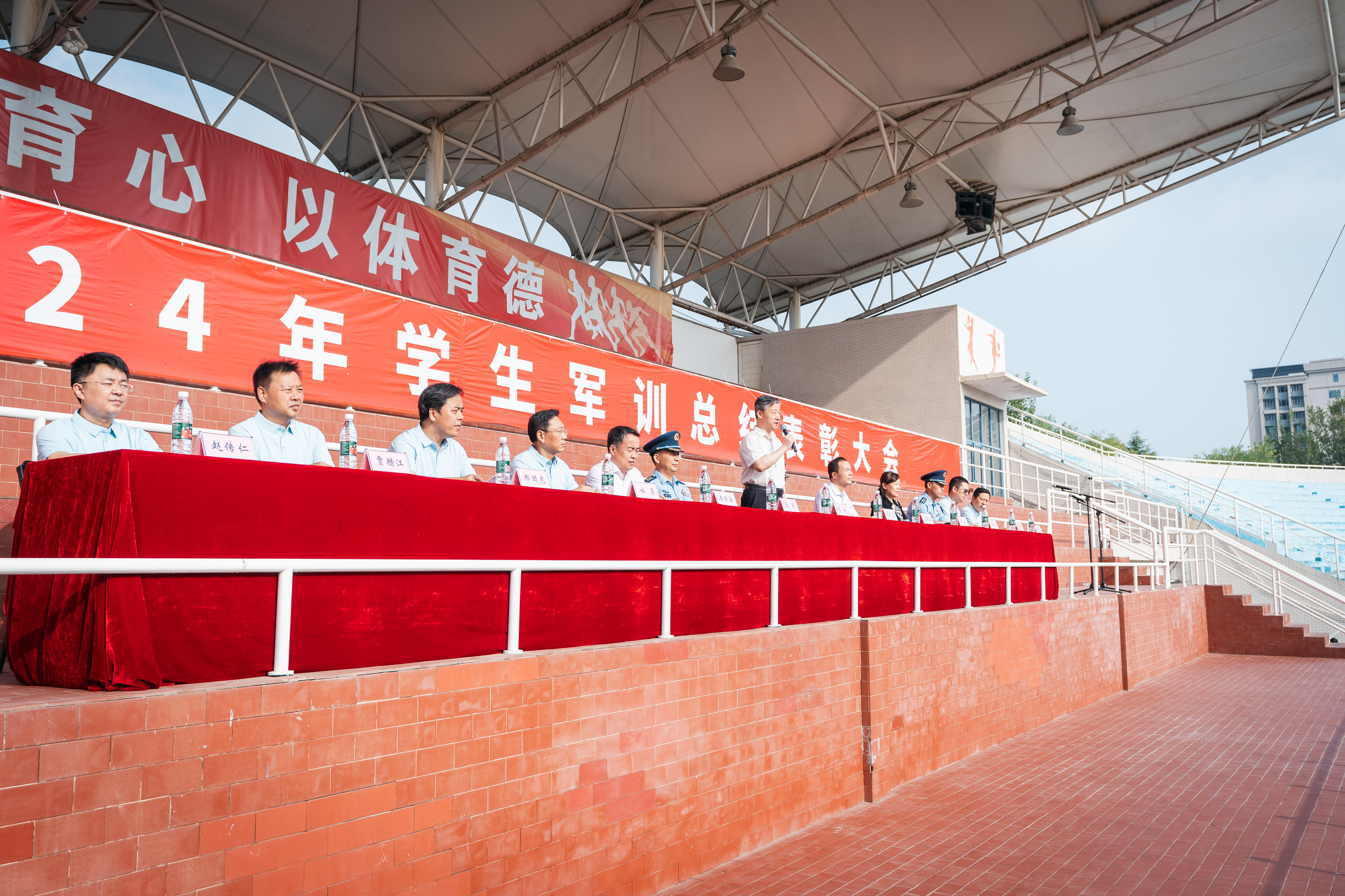 9月11日上午,太阳集团城在长安校区举行2024年学生军训总结表彰大会。校党委书记蒋林,校党委副书记、军训旅政委吕建荣,副校长、军训旅副旅长曹蓉,承训单位某部领导和带训干部,太阳集团城全体参训干部和2024年参训学生参加了大会,汇报大会由校党委常委、副校长、军训旅副政委李振海主持。