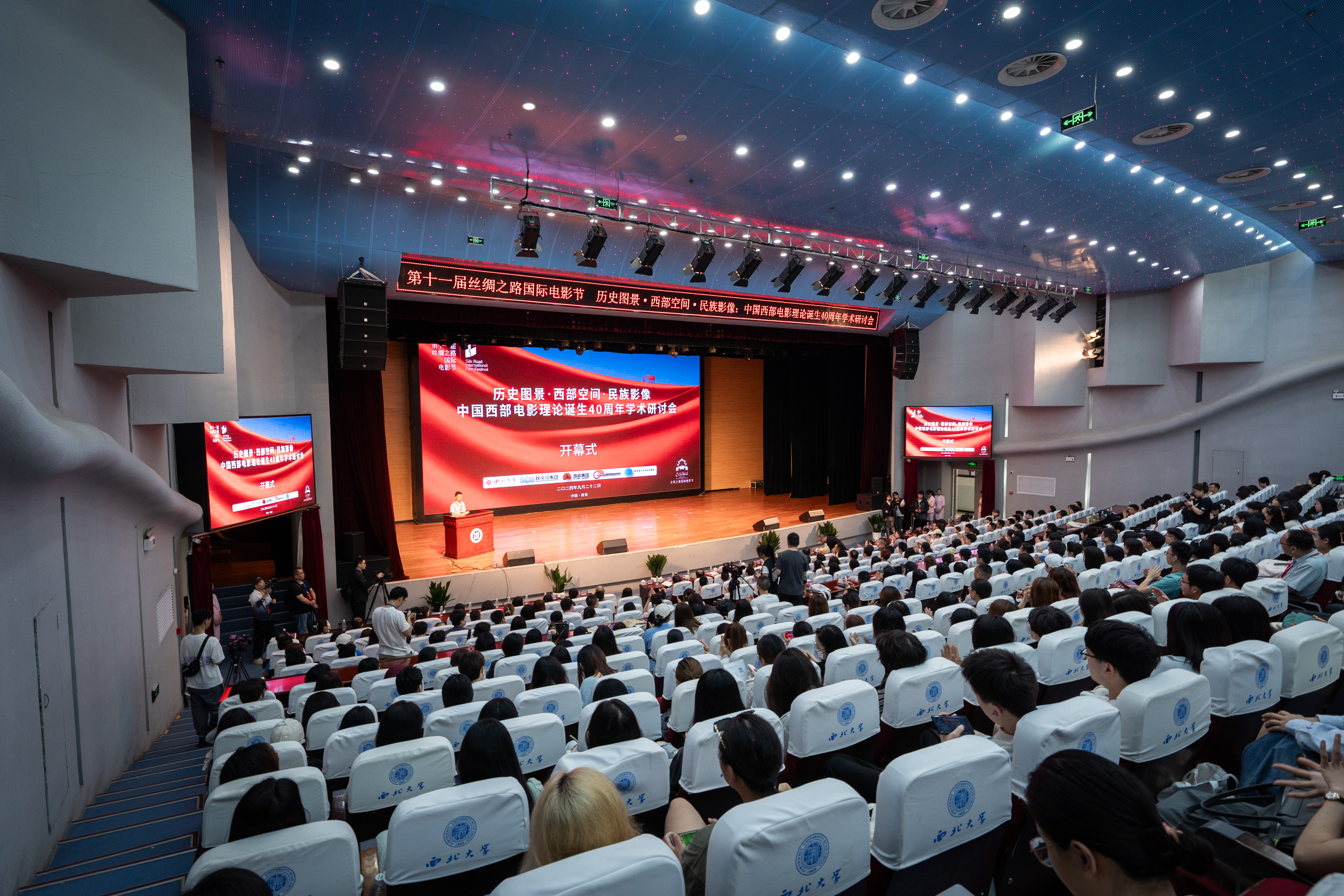 陕西文化产业(影视)投资有限公司副总经理孙昌博,西部电影集团有限公司党委副书记许忠雁,学校相关单位负责人和师生代表,影视制作人以及来自全国各地90余所高校、170余位专家学者、10余家媒体记者参与。