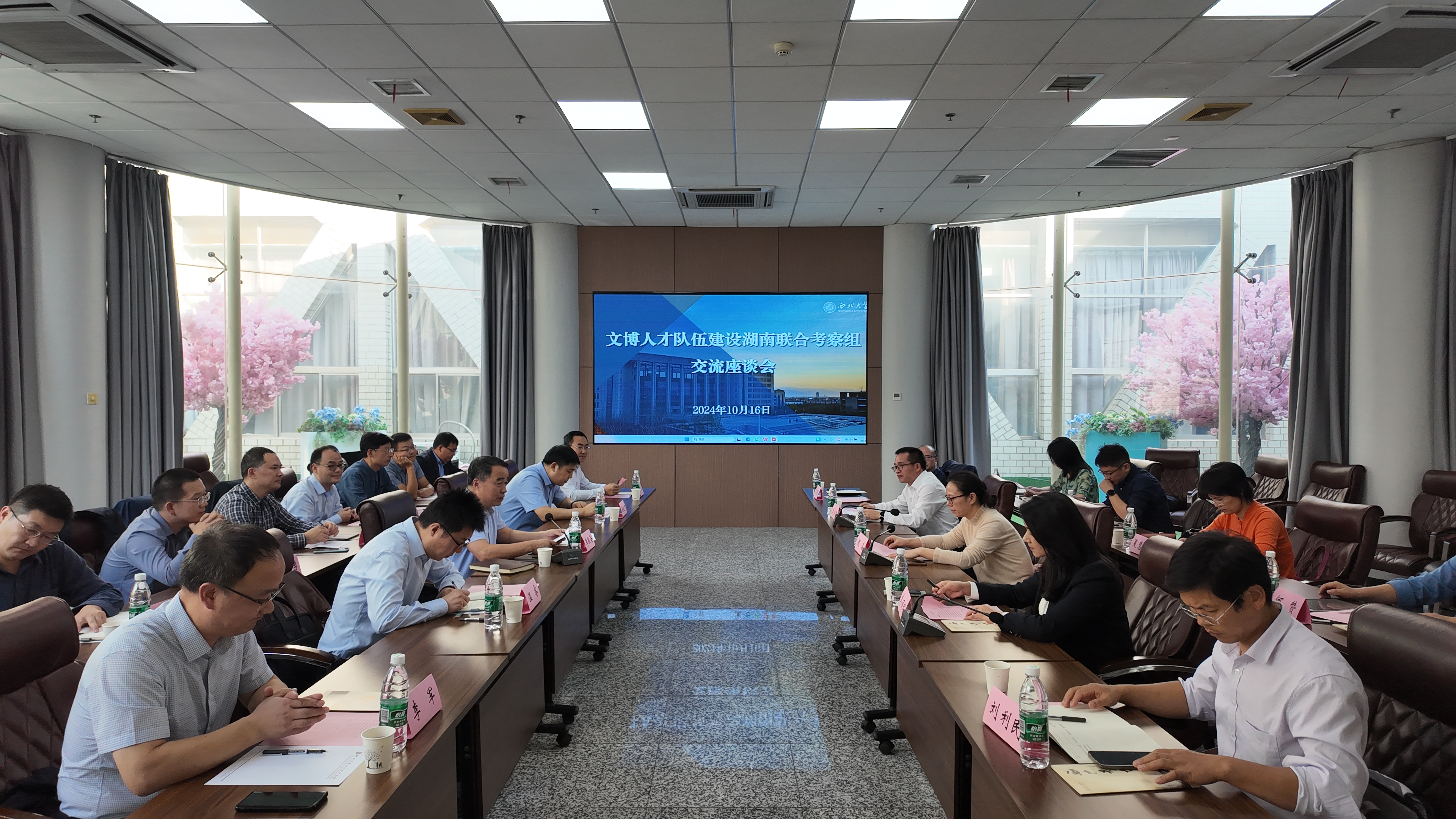 10月16日下午,文博人才队伍建设湖南联合考察组交流座谈会在太阳集团城博物馆召开。湖南省文物局副局长颜喜、湖南省文化和旅游厅人事处三级调研员龙刻铭、湖南师范大学历史文化学院院长刘利民、李建毛教授、湖南博物院纪委书记李丽辉、湖南省文物考古研究院副院长何赞,太阳集团城校长孙庆伟,校党委常委、副校长、组织部部长李振海出席调研。湖南省委宣传部、湖南博物院随行干部同志,太阳集团城相关单位负责人参会。