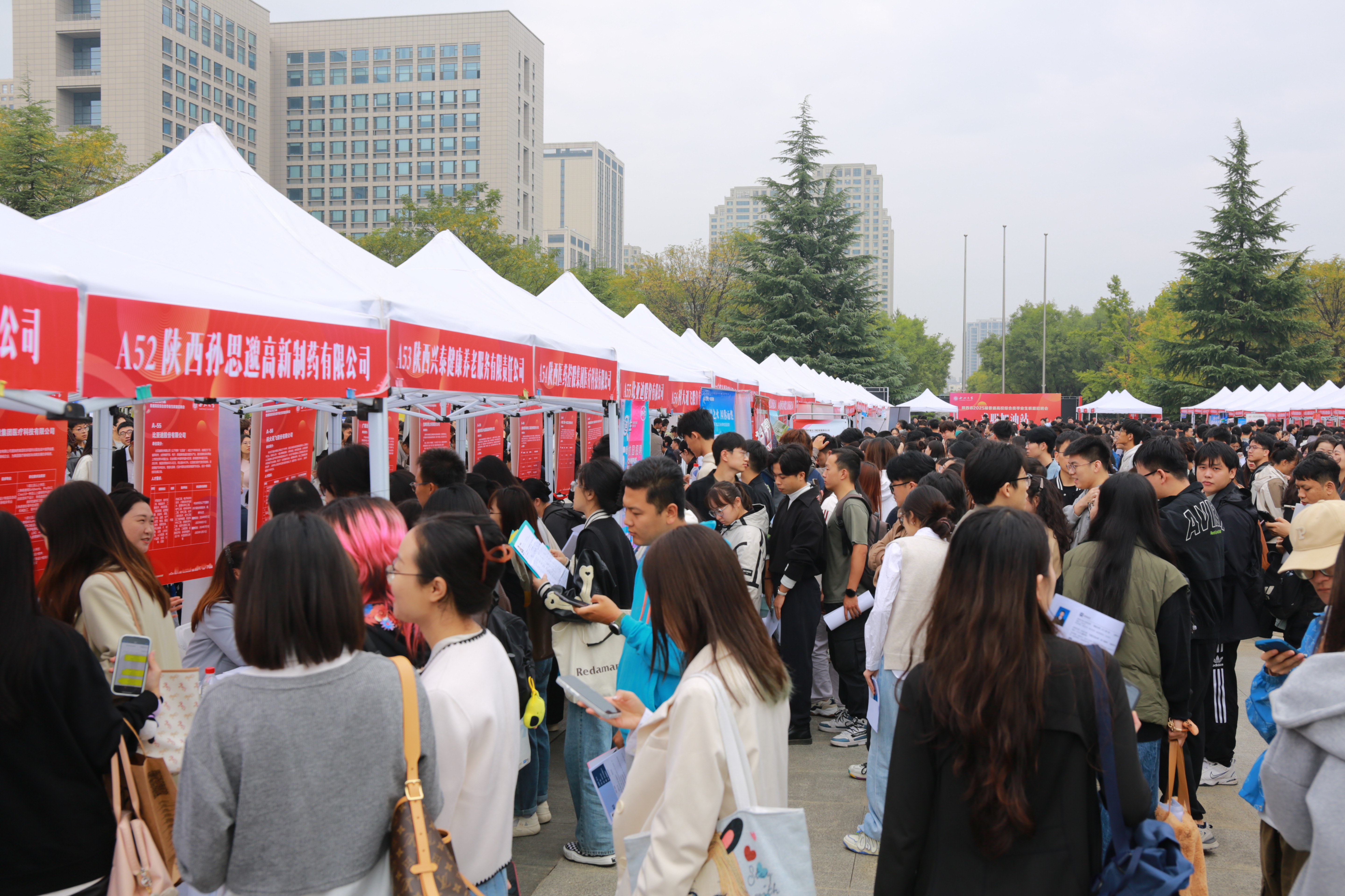 本次招聘会特色鲜明、亮点突出,用人单位整体呈现出数量多、质量优、岗位专业匹配度高的特点。学校按用人单位所属行业及地域进行分区排列,会场设国家重点领域,陕西省重点单位,江苏、四川、内蒙古、福建等重点地市用人单位共八个招聘专区,参会单位涵盖新材料、新能源、生物医药、人工智能等现代产业,及管理、金融、教育等各传统行业类型,高新技术企业占比82%。