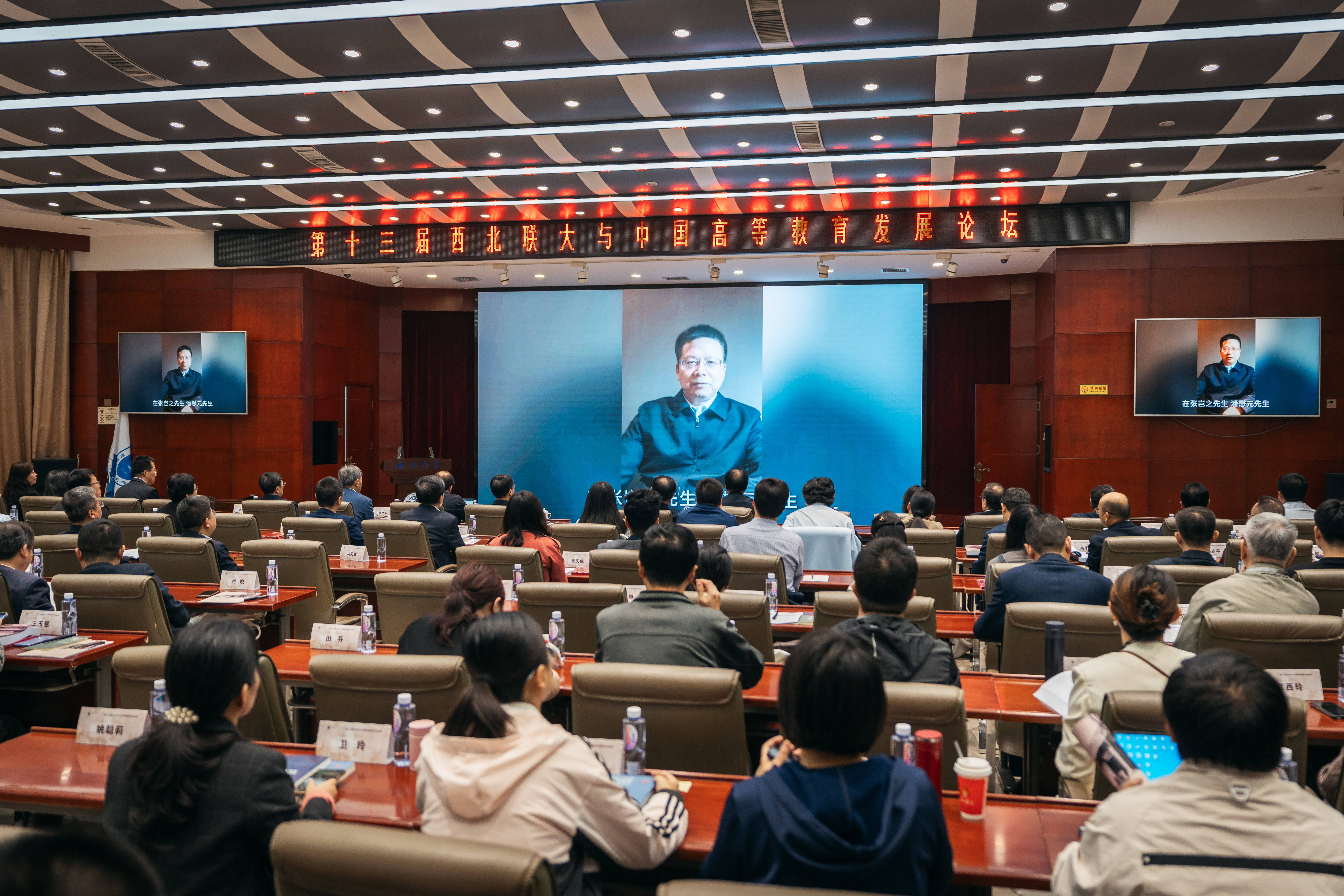 在校长论坛环节,邬大光、张军政、杨欢、孙雷先后以“从西北联大看中国大学迁徙”、“ 厚植家国情怀,坚持守正创新,为新时代高等教育高质量发展注入新动能”、“发扬抗战西北办学精神,为建设教育强国而奋斗”、“ 中国大学文化推动文化强国建设的逻辑理路— —以国立西北联大精神为例”为题作主旨报告。