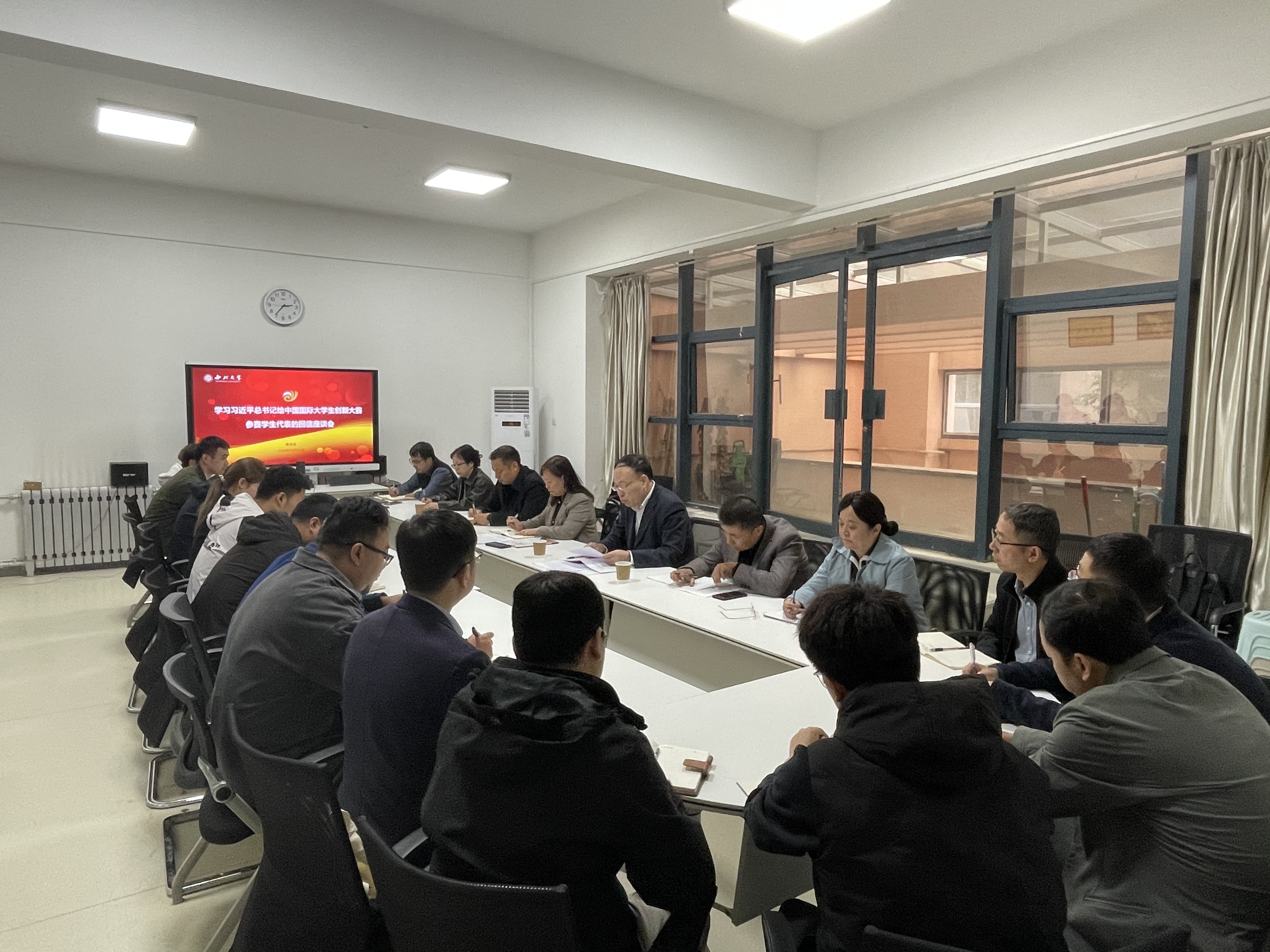 与会人员就习近平总书记的回信交流了学习心得,从参加国赛的评审经历、项目选择与培育、个人参赛收获等方面进行了经验分享,并对具体工作提出了意见和建议。