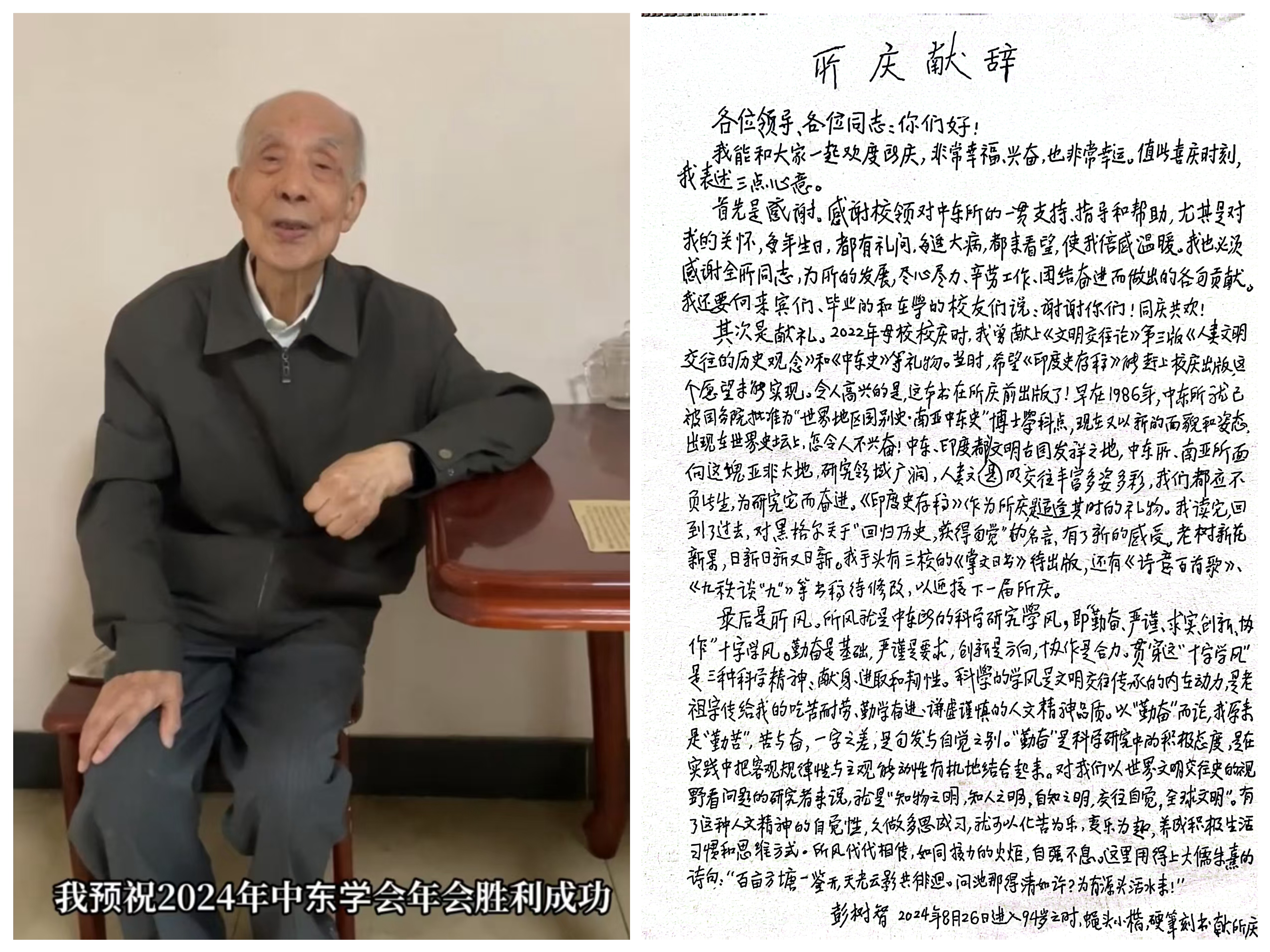 中东研究所名誉所长彭树智视频致辞