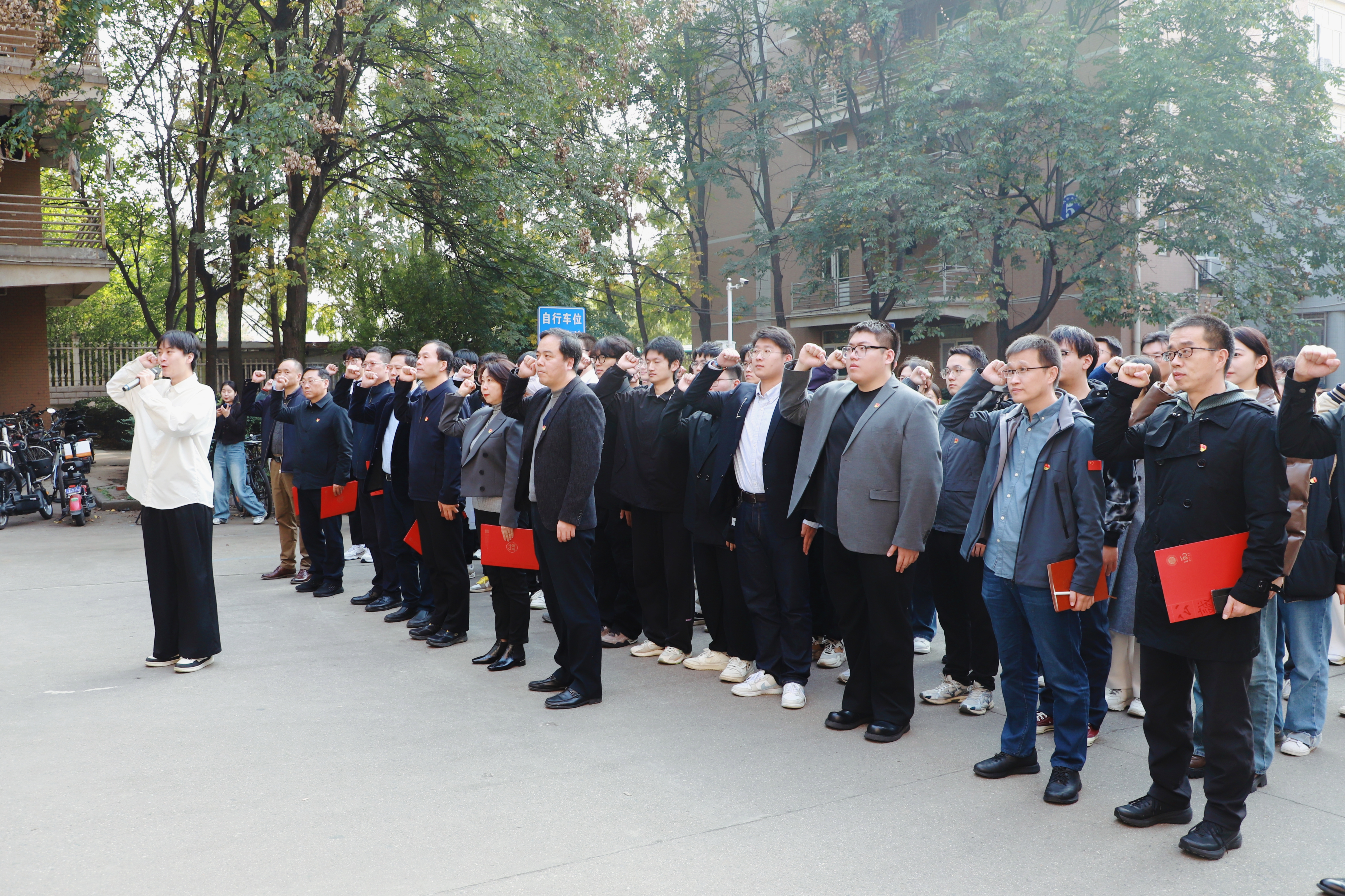 吕建荣在讲话中对获得“党员宿舍”和“党员先锋岗”授牌的集体和个人表示祝贺,就学生党员如何在“亮身份”工程中更有效地亮身份、当标杆、做表率提出三点要求:一要打造思想素质过硬的标杆宿舍,团结引领宿舍内的其他同学坚定对马克思主义的信仰、对中国特色社会主义的信念、对实现中华民族伟大复兴的中国梦信心,深入学习并贯彻党的二十大精神、二十届三中全会精神、全国教育大会精神和党的创新理论,在政治思想锻造上当标杆、做表率。二要打造学风建设优良的标杆宿舍,努力学习,脚踏实地,专注学业,刻苦钻研,勇于创新,追求卓越,形成崇尚学习的良好风尚,在优良学风建设上当标杆、做表率。三要打造安全卫生和谐的标杆宿舍,牢固树立安全意识,以身作则,率先垂范,从自身做起,带领广大同学养成良好的用电安全、人身安全、网络安全及交通安全等习惯,倡导并践行良好的卫生习惯,共同营造和谐、舒适的生活环境,努力营造氛围融洽的宿舍文化,在健康安全和谐校园建设上当标杆、做表率。