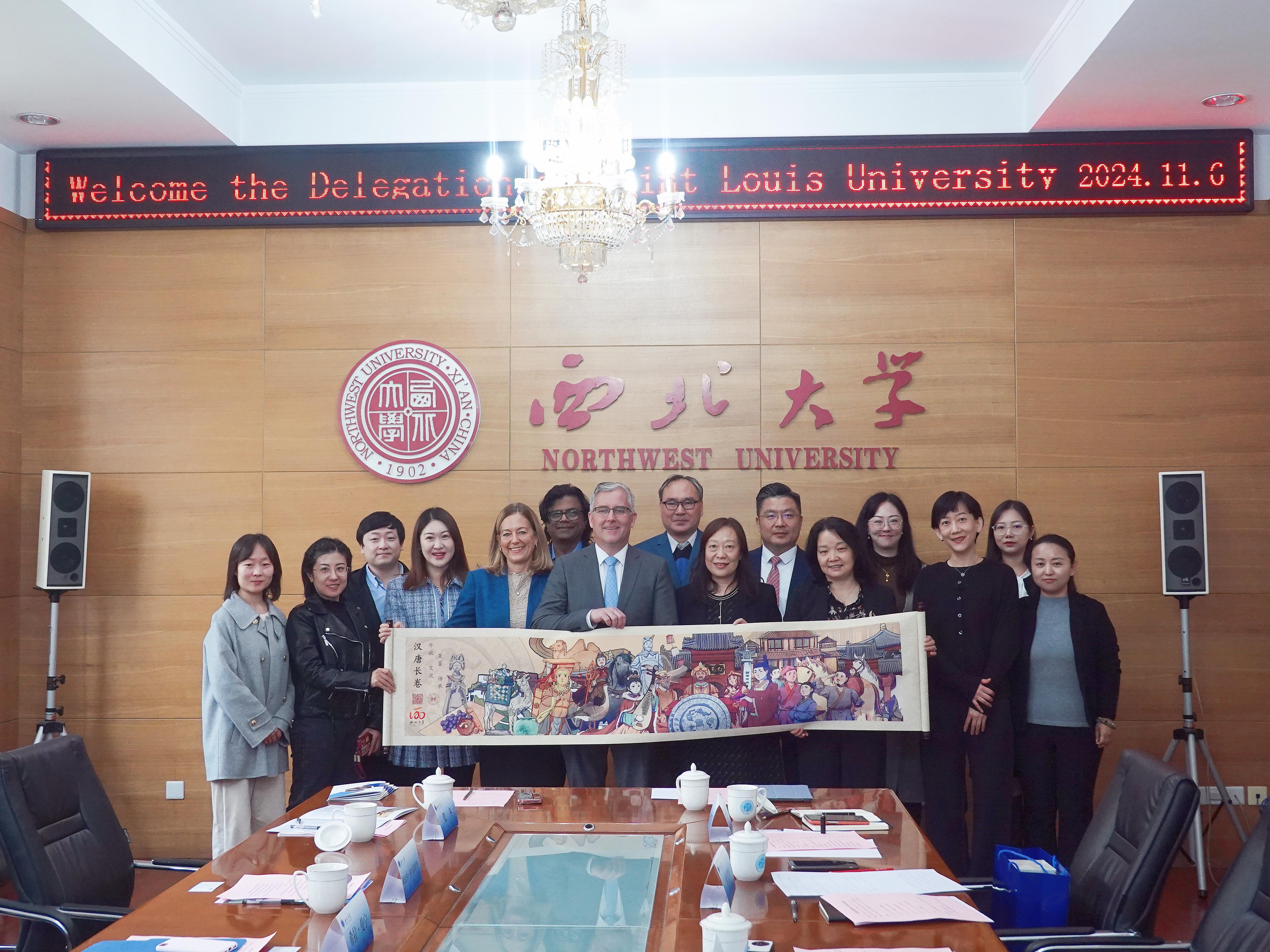 11月6日上午,美国圣路易斯大学教务长迈克尔·刘易斯(Michael Lewis)、副校长希拉·曼宁(Sheila Manion)一行6人访问太阳集团城。副校长曹蓉会见了代表团一行,经济管理学院、外国语学院、数学学院、城市与环境学院、生命科学学院相关负责人和教师代表参加座谈。座谈会由国际合作部负责人主持。
