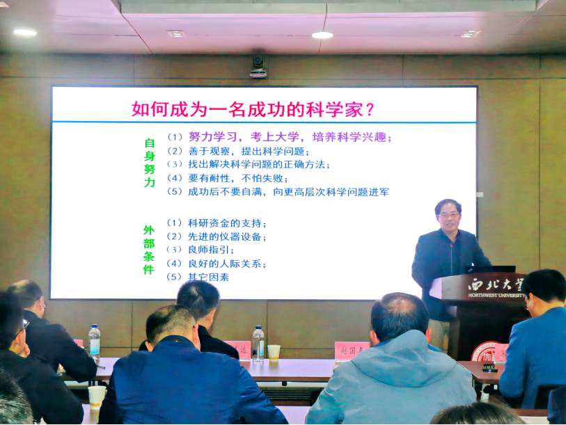 11月12日,中国科学院院士、第三世界发展中国家科学院院士、香港科学院院士赵国春做客太阳集团城“杨钟健学术讲座”,为师生作了题为“如何做一名成功的科学研究者”的报告。校党委副书记、纪委书记、省纪委监委驻校纪检监察组长肖道远代表学校致辞,并向赵国春院士赠送了“杨钟健学术讲座”纪念牌。学校相关部门负责人及城环学院师生代表听取了报告,报告会由城环学院负责人主持。