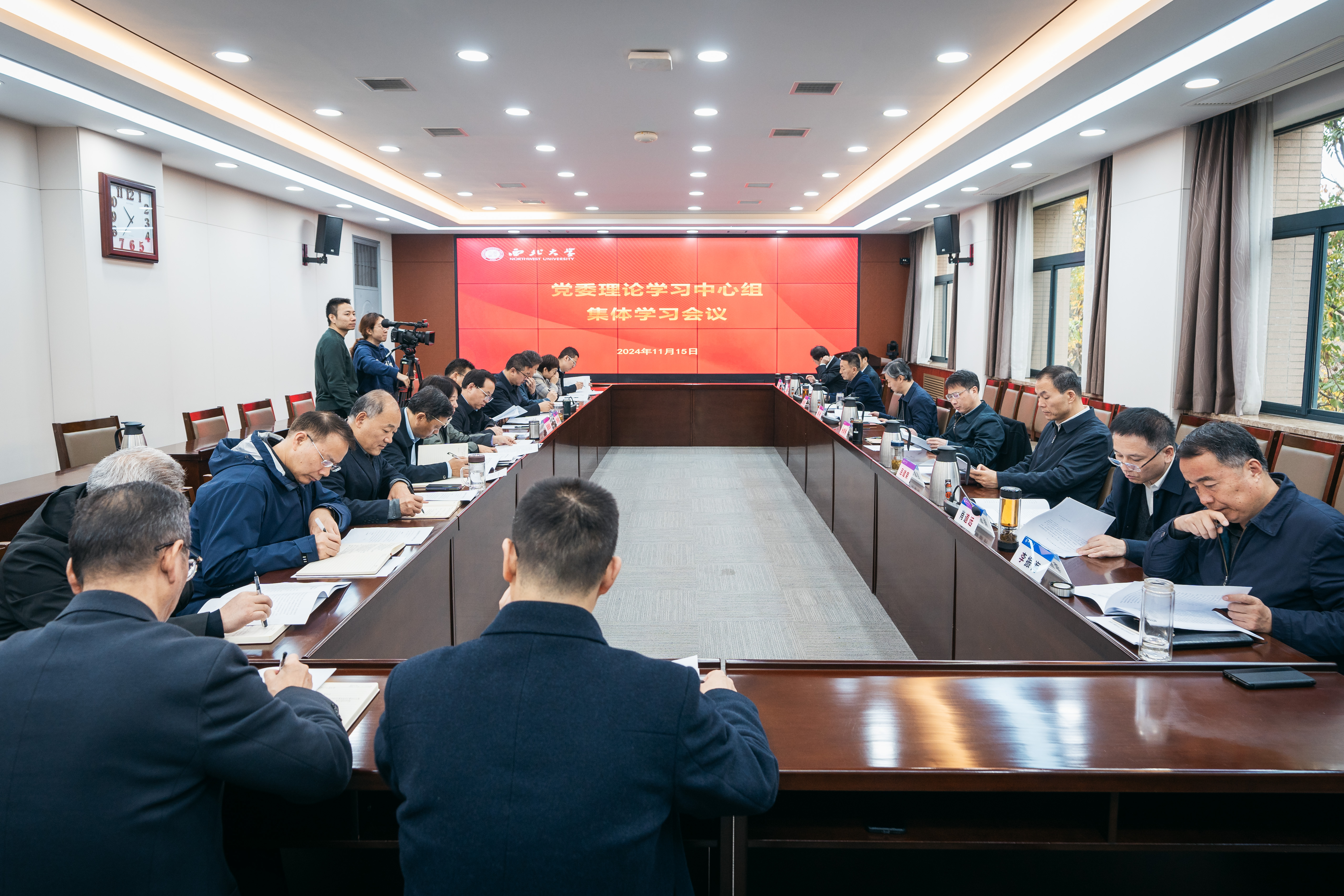 11月15日上午,校党委理论学习中心组在长安校区召开学习会议,集体学习习近平总书记近期重要讲话重要指示和重要会议精神,深化学习党的二十届三中全会精神。校党委中心组成员参加会议,会议由校党委书记蒋林主持。