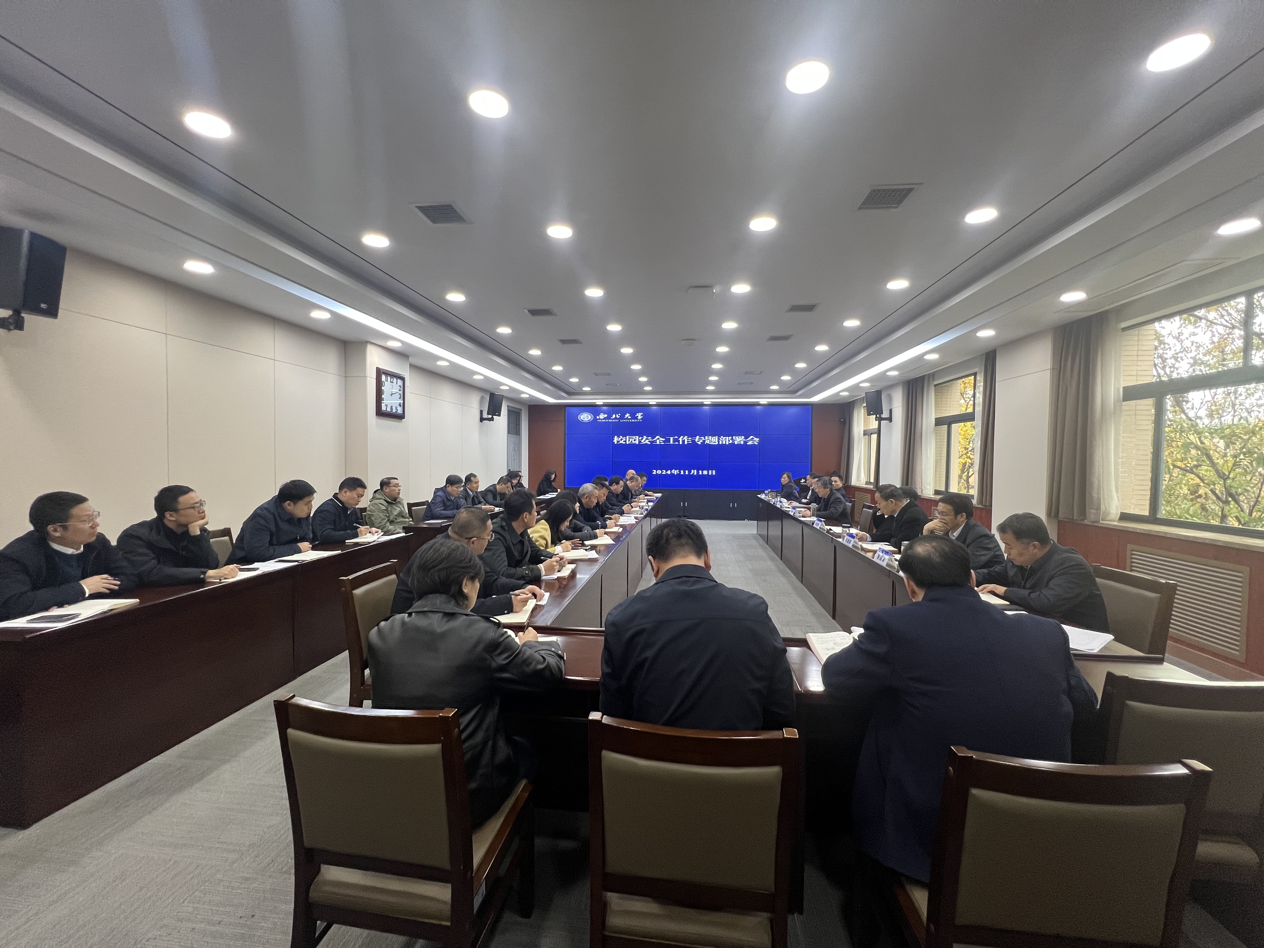 11月18日,学校在长安校区召开校园安全工作专题部署会,校党委书记蒋林、校长孙庆伟及其他班子成员,稳定安全办公室成员单位负责人、安全生产委员会成员单位负责人参加了会议。会议由校党委副书记吕建荣主持。