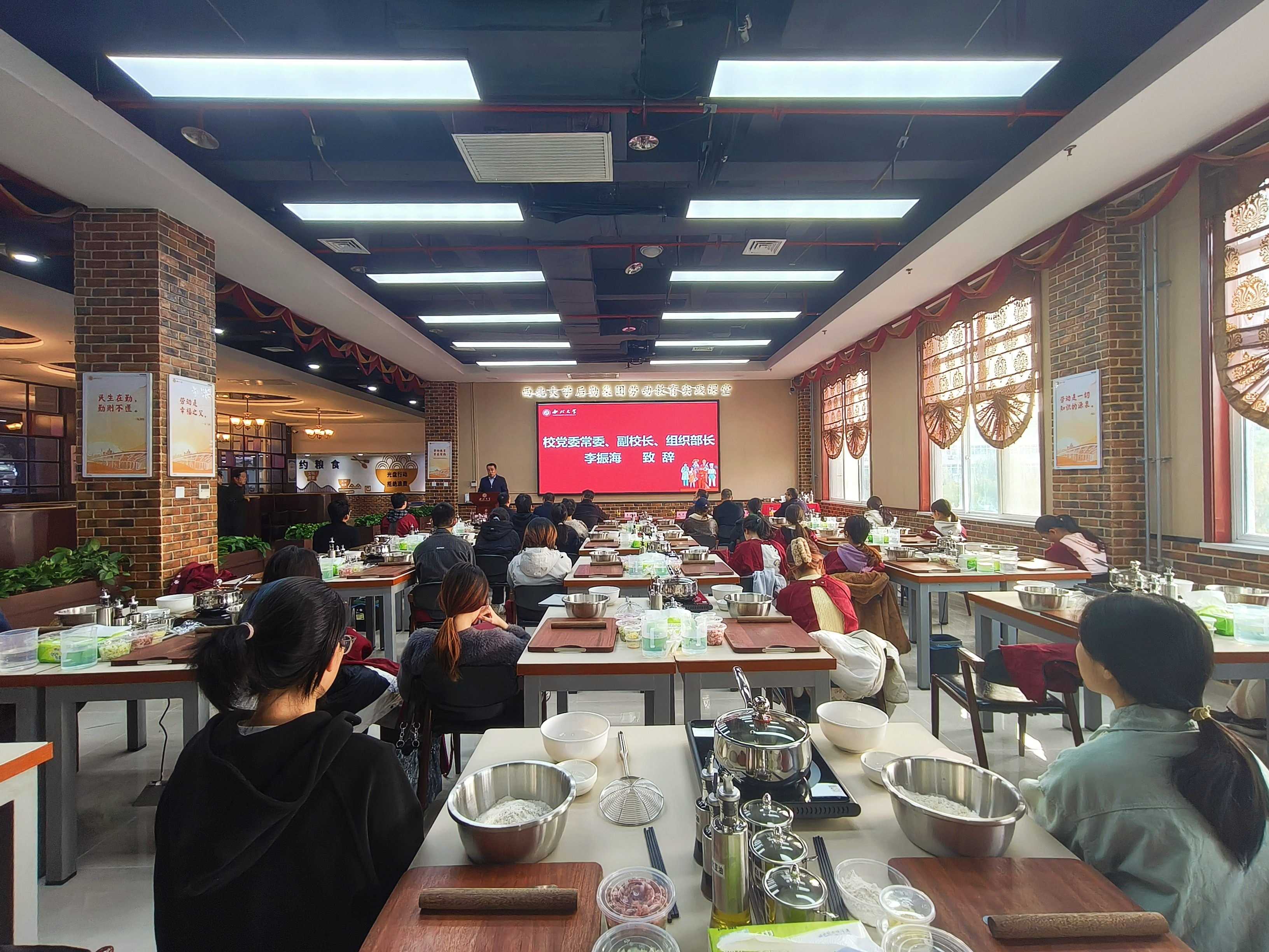 11月20日下午,太阳集团城劳动教育实践烹饪课开班仪式在长安校区玉兰苑勤育园餐厅举行。校党委常委、副校长李振海,教务处、研究生院(部)、信息学院、后勤集团等相关单位负责人出席,师生代表等40余人参加了此次仪式。仪式由后勤集团党委负责人主持。