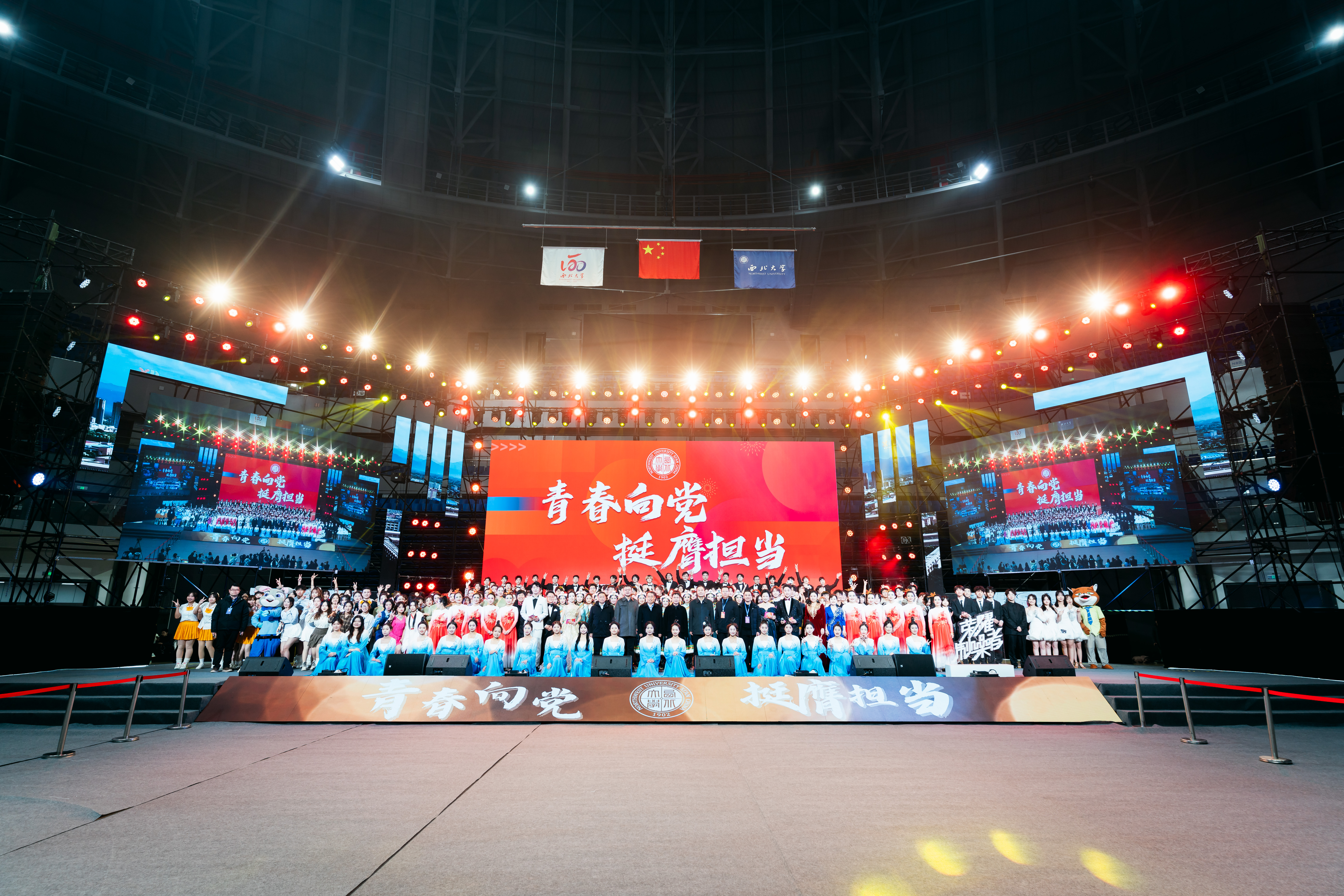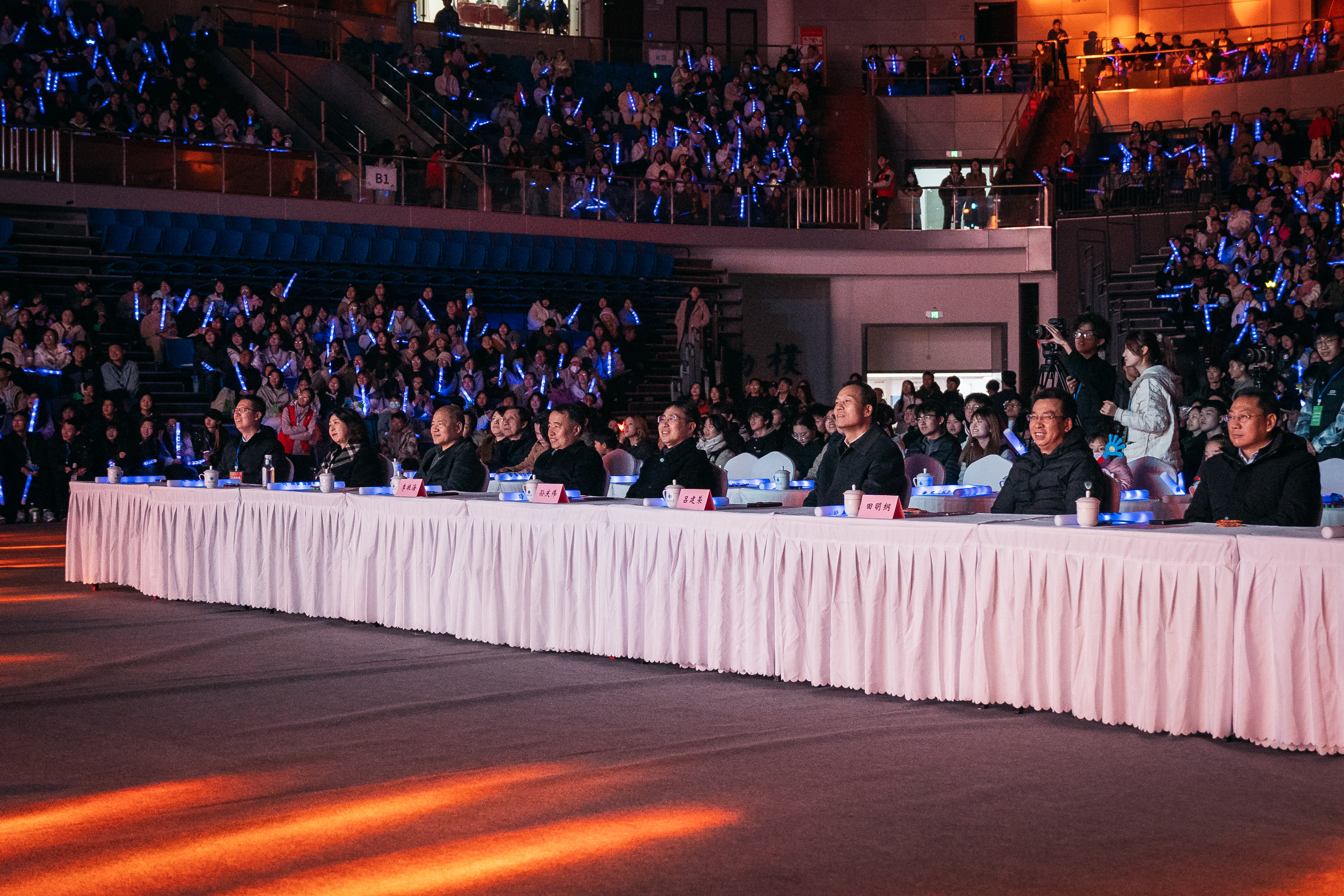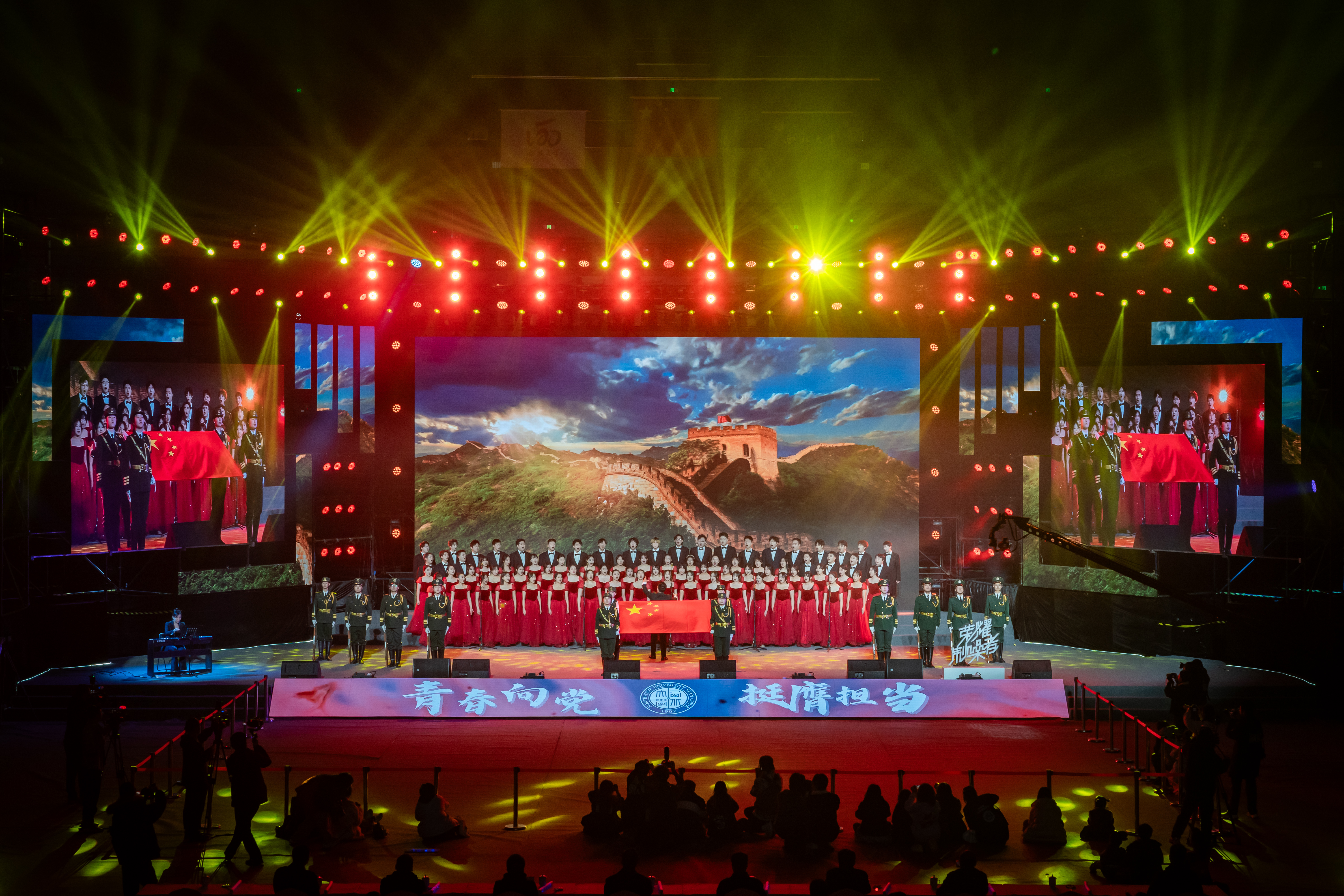11月29日晚,古天乐代言太阳集团城网址“青春向党 挺膺担当”2024年迎新晚会在长安校区体育馆举行。校长孙庆伟,校党委副书记吕建荣,校党委常委、副校长李振海,校党委常委、宣传部部长田明纲到场观看晚会。校学生工作领导小组成员单位主要负责人,各院(系)党政主要负责人以及2024级新生共5000余人共同欣赏了迎新晚会。