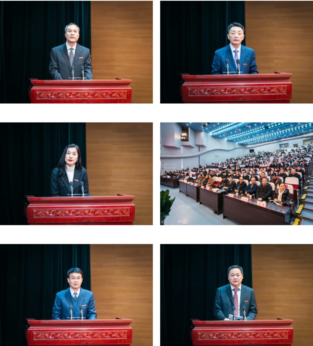 蒋林在总结讲话中肯定了学校一年来取得的成绩,对为学校建设发展辛勤工作的全体教职员工表示感谢。他指出,过去一年全校上下深融互促,厚植“进”的发展优势;真抓实干,积聚“新”的发展动能;善谋力行,夯实“超”的发展基础,在攻坚克难中交出了亮丽答卷。就做好2025年工作,他要求,一要看清方向,在把握大势中赢得工作主动。要从中央决策部署中抢抓机遇,从全省发展大局中洞察时势,从学校目标定位中深化改革。二要聚焦主线,在推进教育科技人才体制机制一体化改革中做示范。要紧扣立德树人根本点,增强“三位一体”育人协同力;抓好科技创新着力点,增强“三位一体”科技支撑力;把握人才队伍关键点,增强“三位一体”人才保障力。三要全校动员,全身心投入本科教育教学审核评估。要紧抓评估契机,构建高质量人才培养体系;聚焦评估重点,建设高水平质量保障体系;强化协同推进,全面落实审核评估核心任务。他最后强调,站在新的发展起点,全校上下要以推进教育科技人才体制机制一体化改革为主线,以本科教育教学审核评估为抓手,先人一步谋发展、快人一拍抢机遇、胜人一筹抓落实,全力推动各项事业追赶超越,以学校高质量发展的新成效,为奋力谱写中国式现代化建设的陕西新篇章作出新的更大贡献。
