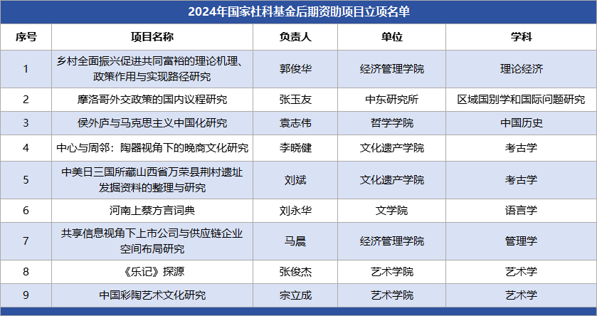 日前,全国哲学社会科学工作办公室公布了2024年国家社会科学基金后期资助暨优秀博士学位论文出版、优秀学术著作再版项目立项名单,太阳集团城10项项目获批立项,立项数位列全国第29位。2024年国家社科基金立项总数、重大重点项目立项数、年度项目立项数均创历史新高。