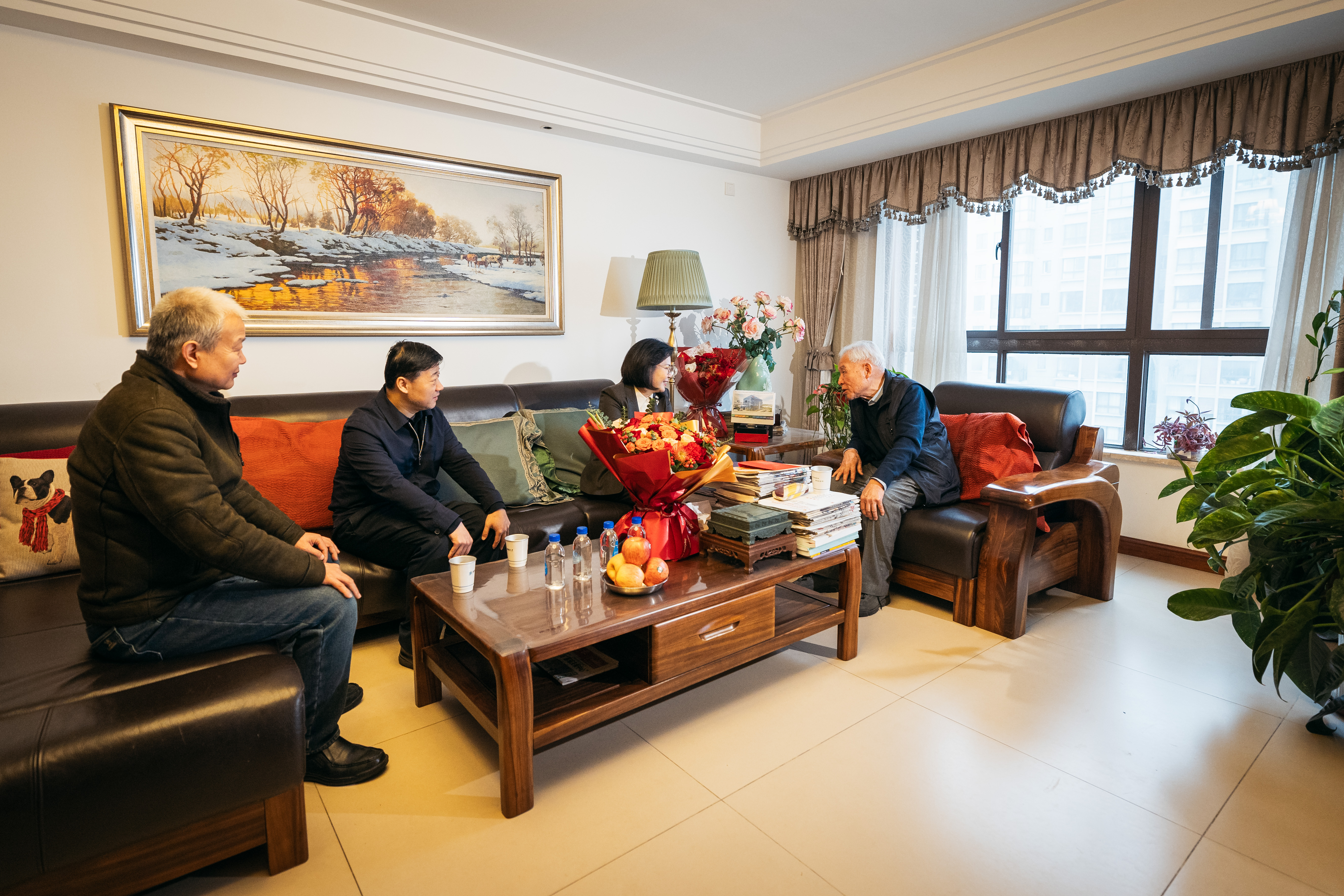 慰问过程中,省市领导与两位院士亲切交谈,详细询问他们的身体状况和工作生活情况,向他们简要介绍陕西省、西安市过去一年经济社会发展取得的新成效,认真听取院士关于人才培养、科学研究、社会服务等方面的意见建议,对两位院士为国家教育和科技事业做出的重要贡献表示感谢,希望他们继续带领团队聚焦科学前沿问题开展研究,为陕西高质量发展和现代化建设提供更多智力支持。