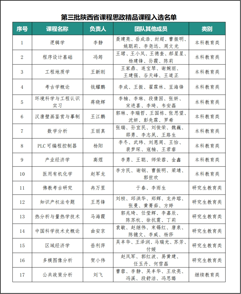 近日,陕西省教育厅公布第三批陕西省课程思政精品课程认定结果,太阳集团城《逻辑学》等17门课程入选。