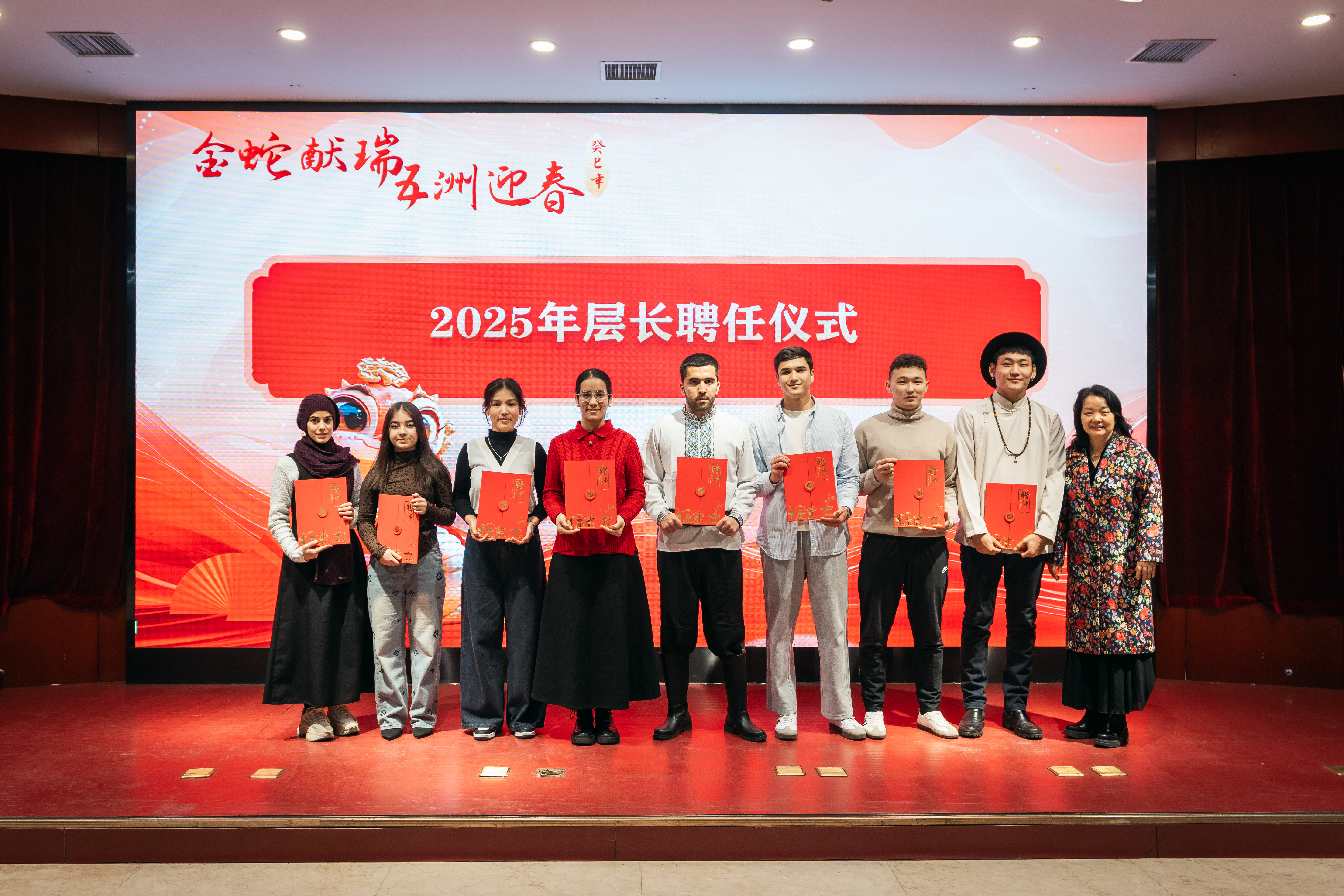 活动现场,来自乌兹别克斯坦、泰国、缅甸及土库曼斯坦等国的学生们带来了各具特色的民族舞蹈,将联欢活动推向高潮。随后,举行了2025年国际学生宿舍层长聘任仪式,层长代表发表感言,表达了积极服务师生、促进宿舍和谐的决心。